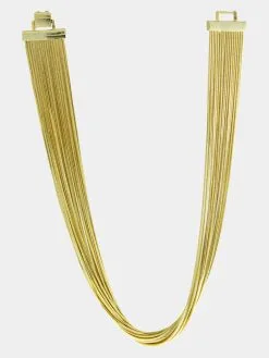 Gold-toned chains drape together in a dramatic fashion and are the perfect accessory to add a little glamour to your wardrobe. This chain is a fine sample of a jewelry staple you should have in your jewelry box.