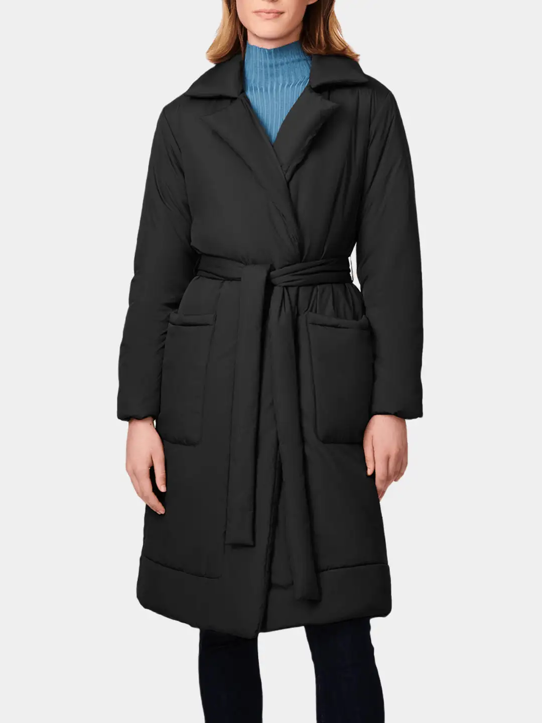 Puffer style with a little extra warmth, this solid trench coat offers the warmth of eco-friendly faux down filling.