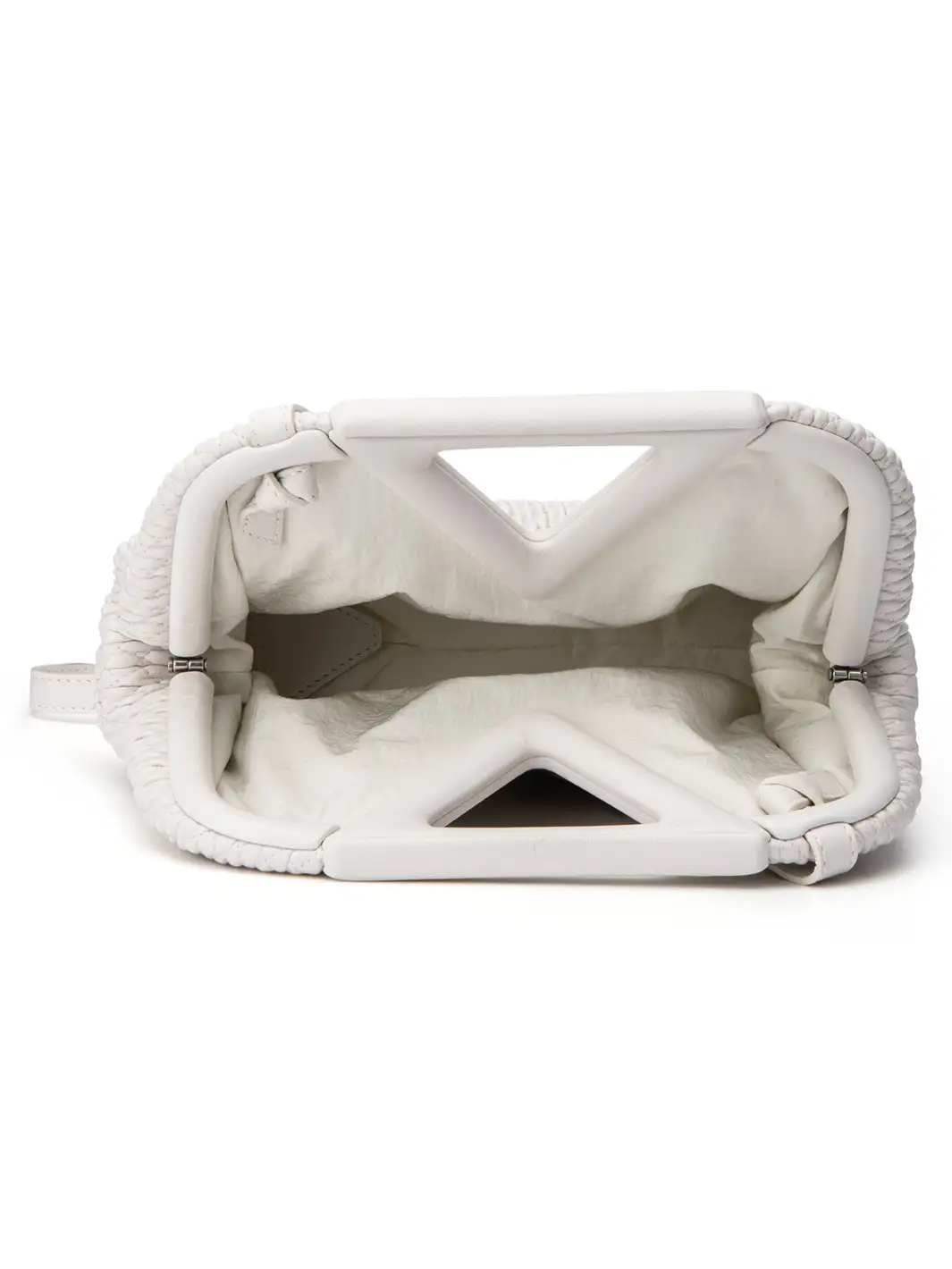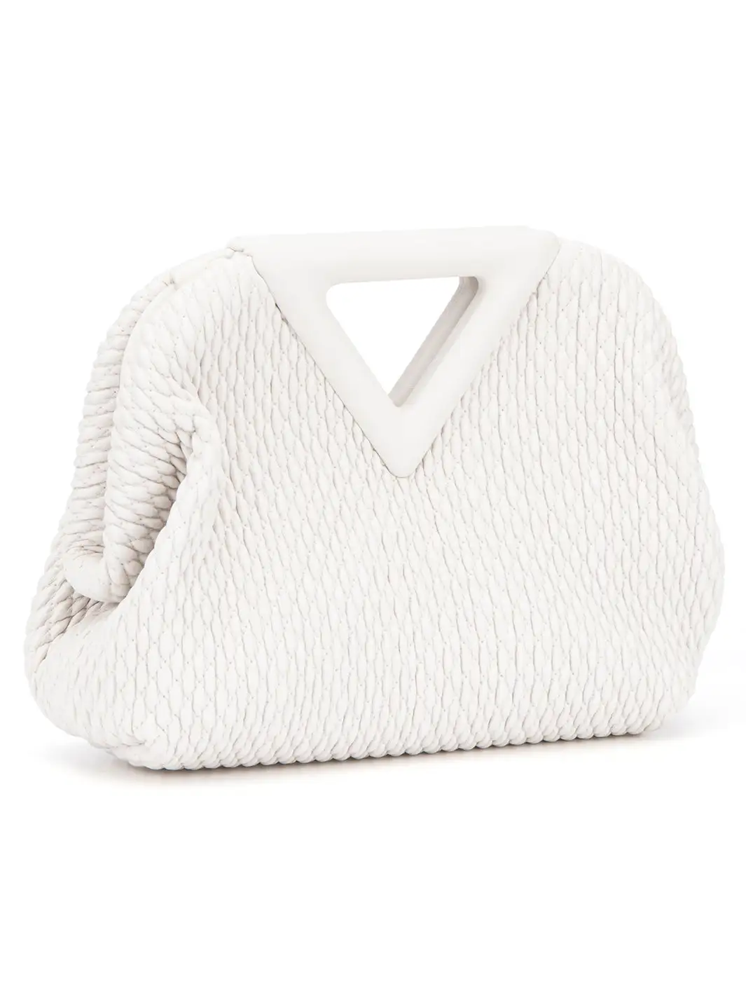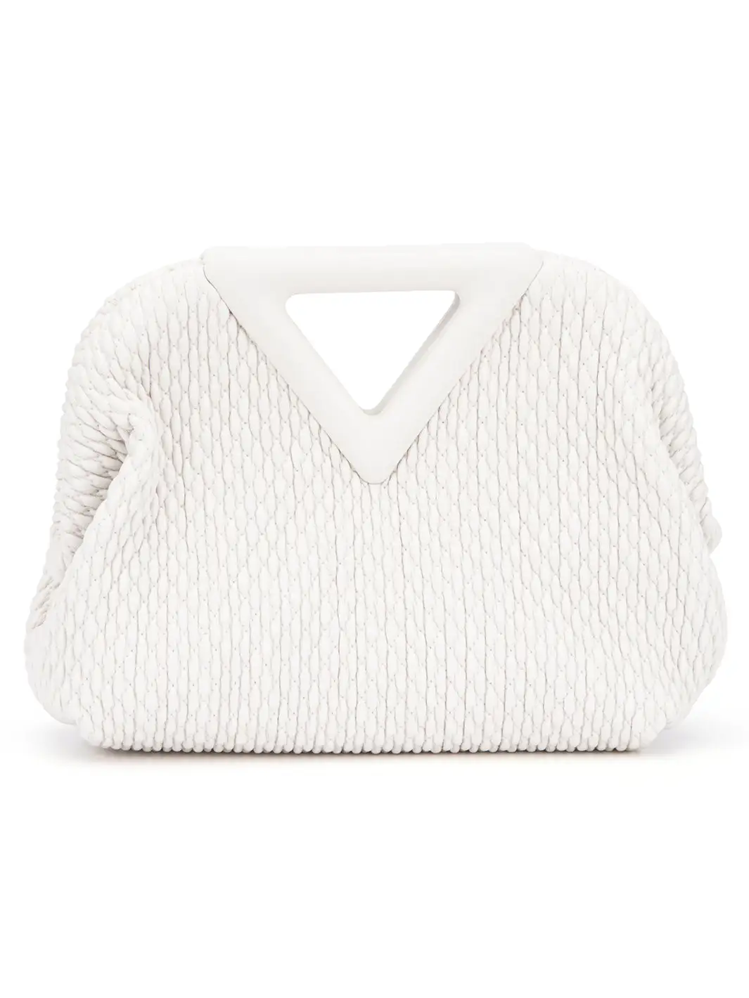 Medium lozenge quilted leather bag with top handle and detachable strap.
