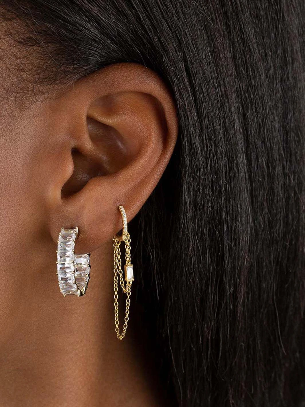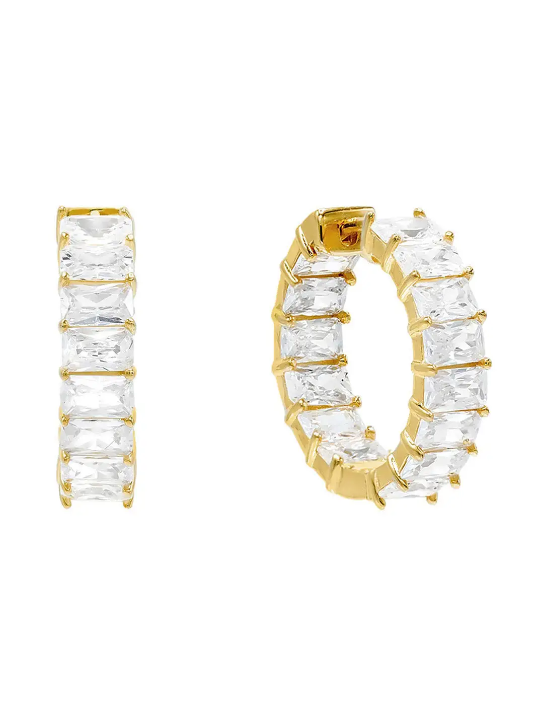 Create a glamorous effect with this ‘Baguette’ hoop earring, crafted with shiny Cubic Zirconia baguette stones set in sterling silver.