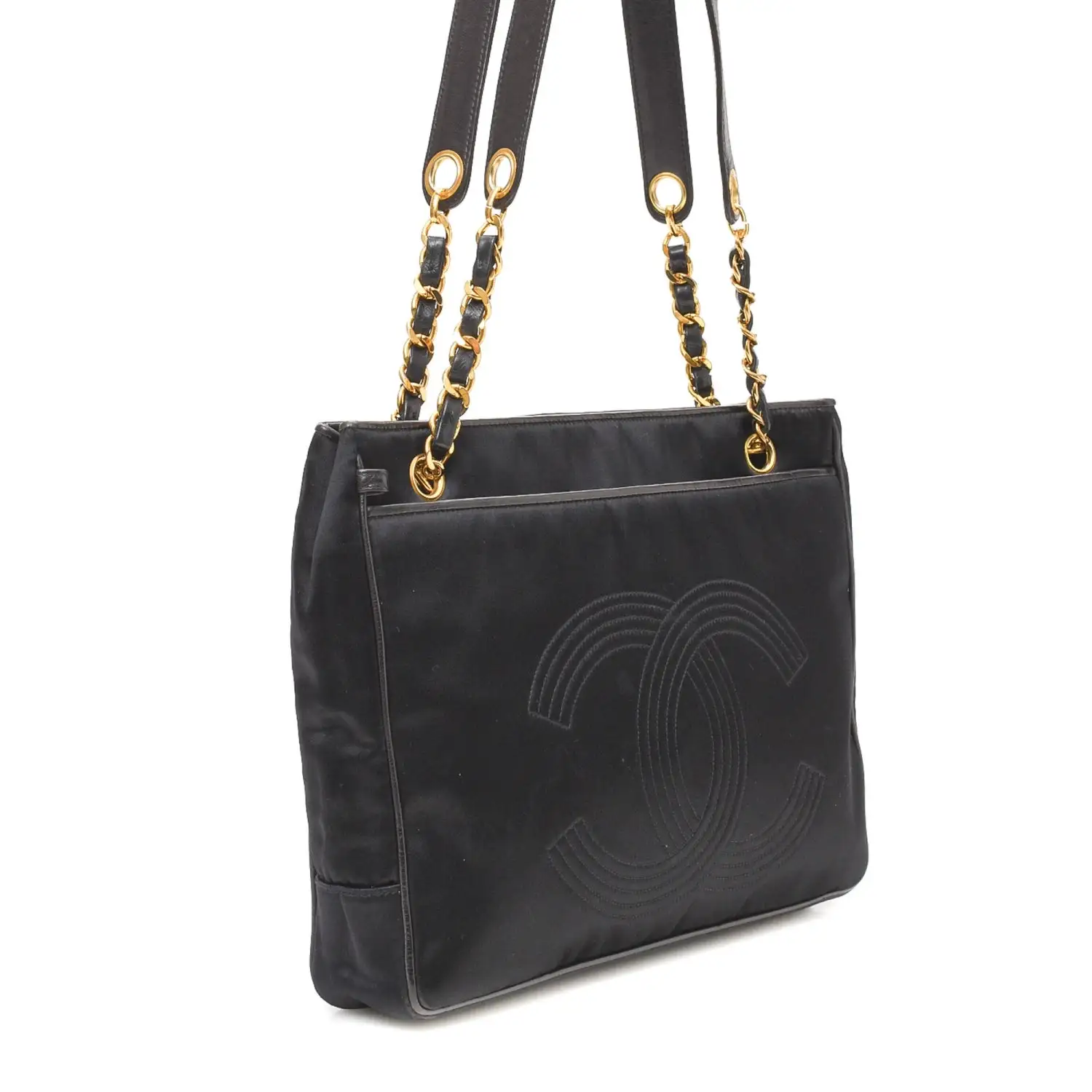 This pre-loved Chanel CC Logo Chain Tote Bag is crafted in Satin. This iconic Tote Bag comes in beautiful Black.