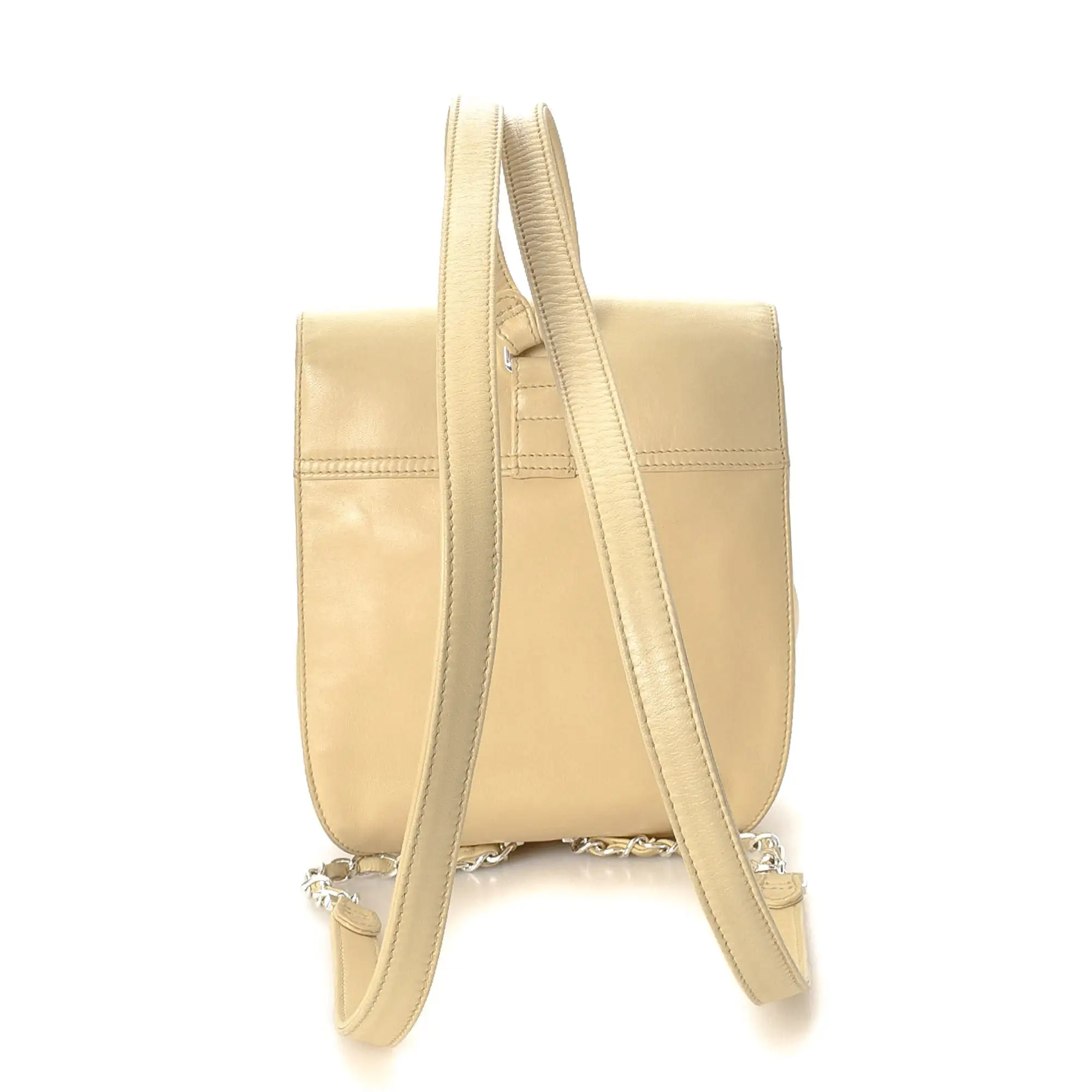 This pre-loved Chanel Mini Backpack is crafted in Lambskin. This iconic Backpack comes in beautiful Cream. The authenticity of this item is guaranteed by LXR. For authenticity reasons, your item will come with a cable attached and must remain for any disputes.