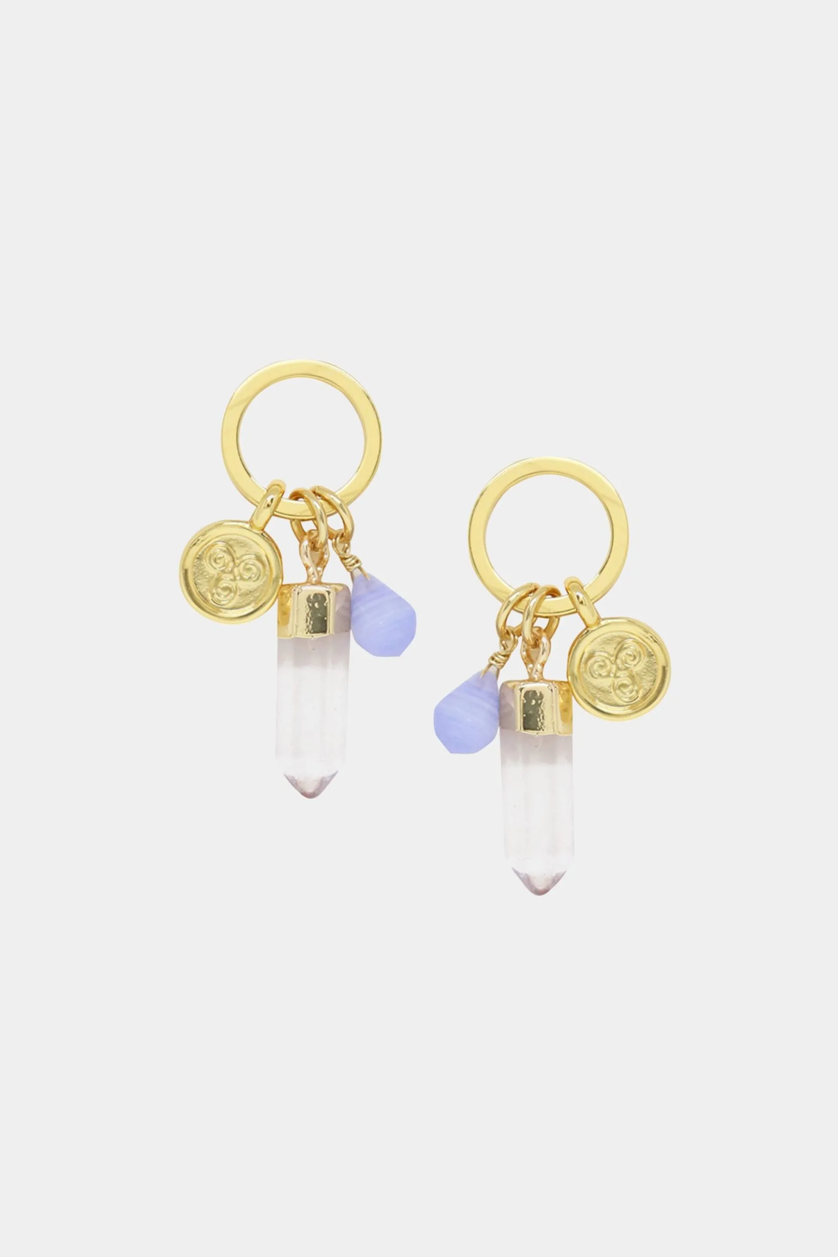 Stones with Stories, Charged By You. A semi-precious teardrop and crystal quartz earring made for everyday wear. Crystals are natural energy holders. They emit energy by absorbing from other elements. By charging the stones with your own energy, you personalize your stone with your own intentions while amplifying the natural properties of the stones.