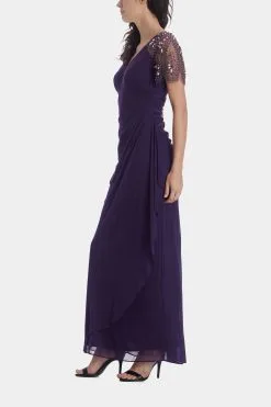 XSCAPE Long Beaded Flutter Sleeve Dress