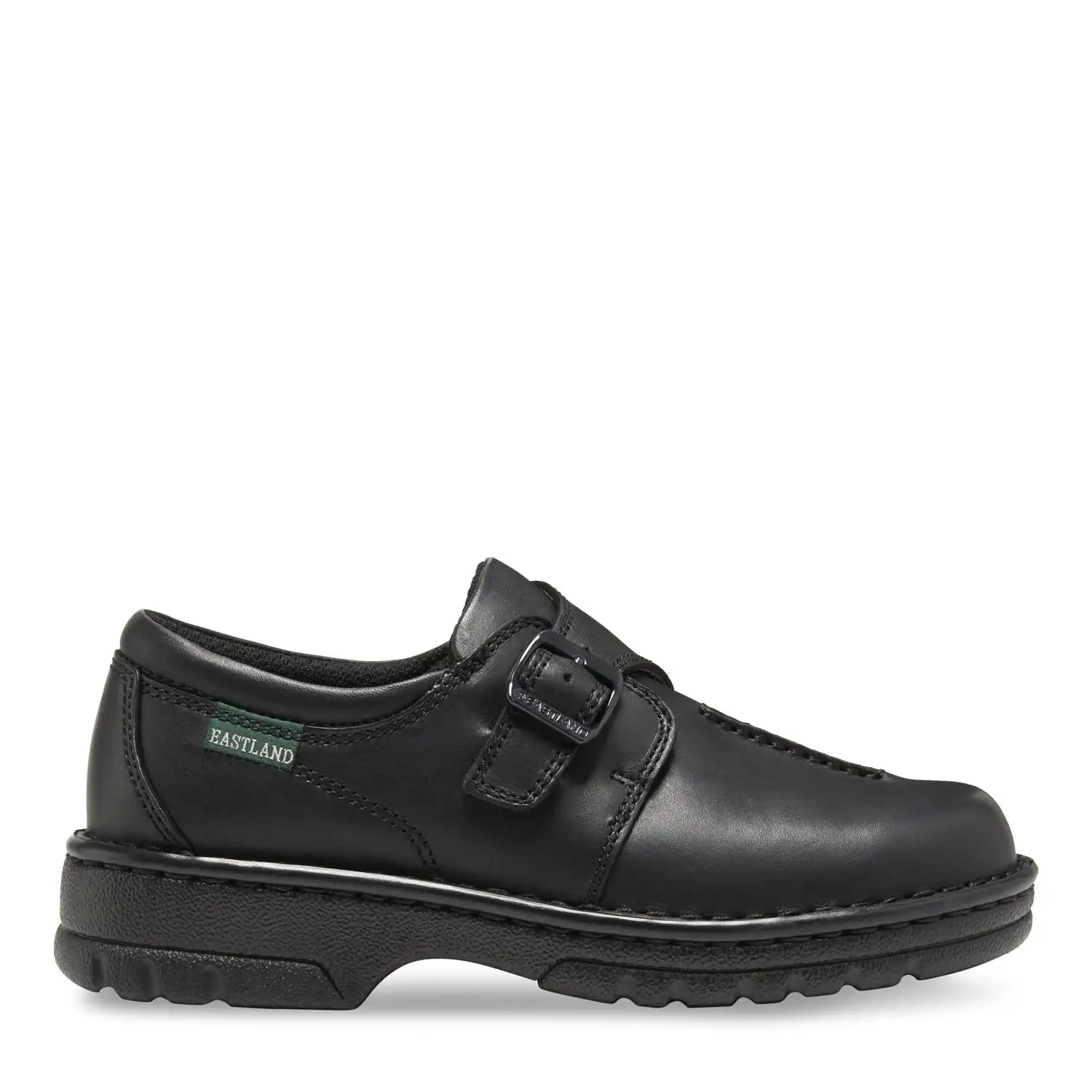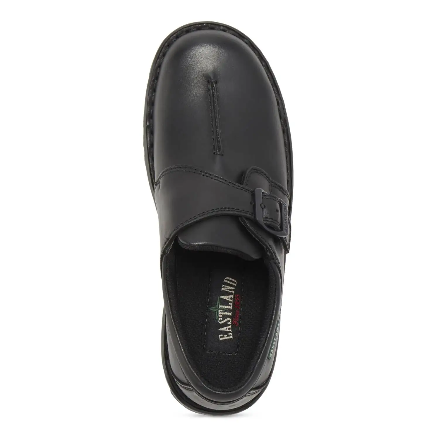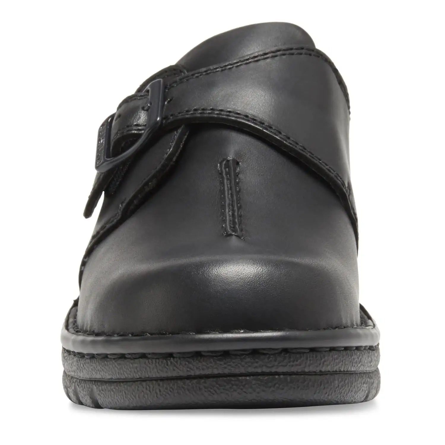 Center seam detail and topstitching for visual accent. Padded collar and functional adjustable buckle for a cozy, custom fit. Easy-to-care-for full grain leather upper and breathable fabric sock lining. Removable, cushioned insole with super soft comfort zones does away with over-stressed feet. Hand-sewn, Opanka stitch-to-sole construction provides no break-in flexibility and long-lasting wear. Shock absorbing Polyurethane outsole offers lightweight durability and traction.