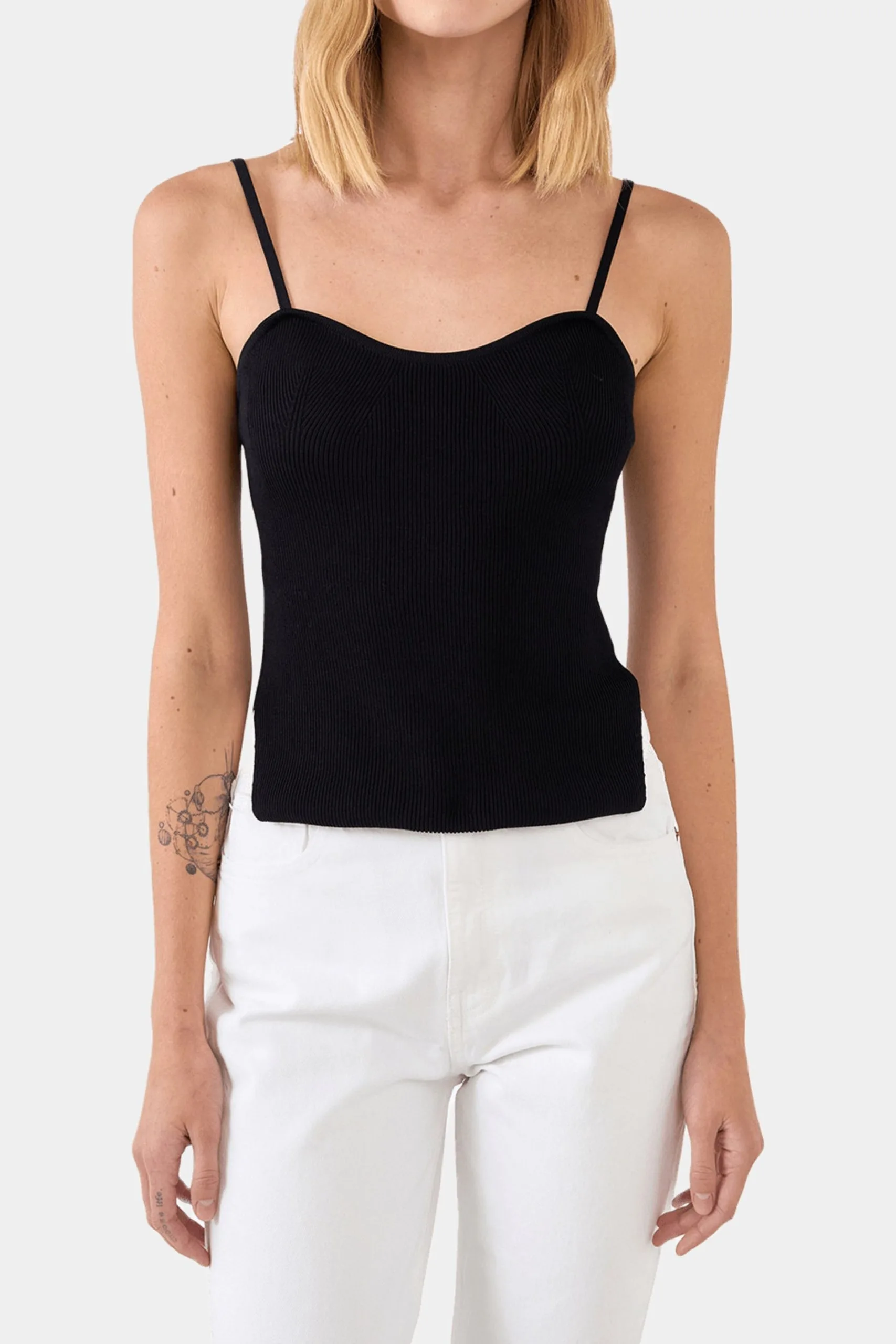 - Elevated knit, Corset bust , Double slit opening, Skinny strap , Fitted, Regular length