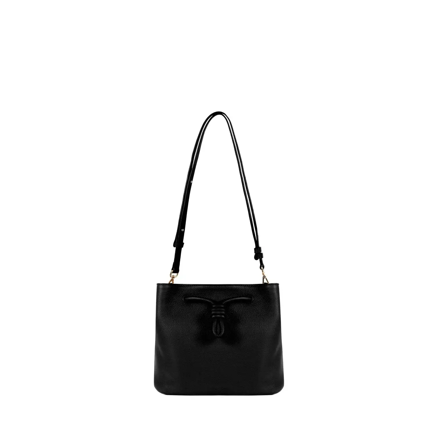 The elegant Midi Richmond leather bucket bag is a medium size handheld bucket bag that can easily expand and convert into a shoulder bag or a crossbody bag.