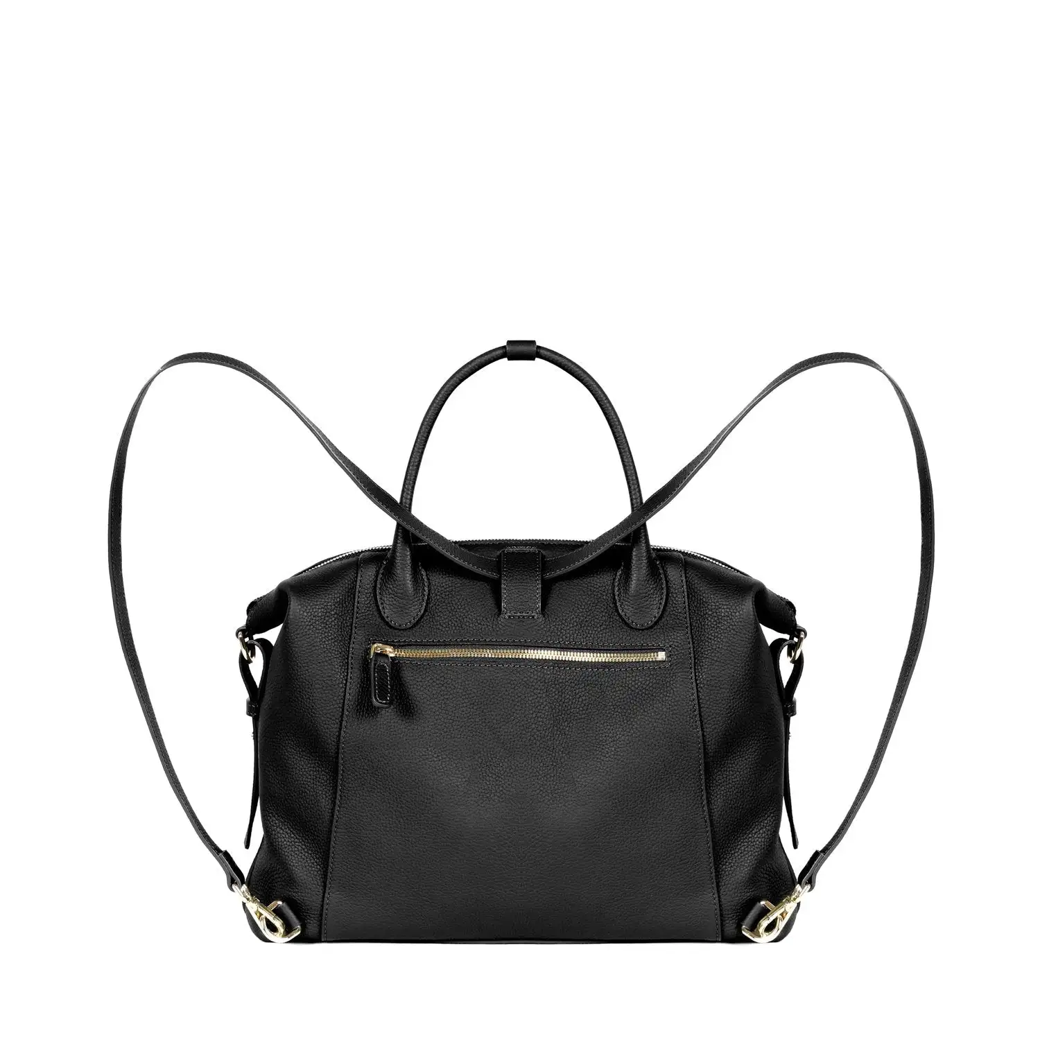 The Wimbledon backpack tote is designed to convert into a top handle tote bag, a shoulder bag and a crossbody bag. The design combines practicality and sophistication with its signature reef knot on the front and a knot zip puller