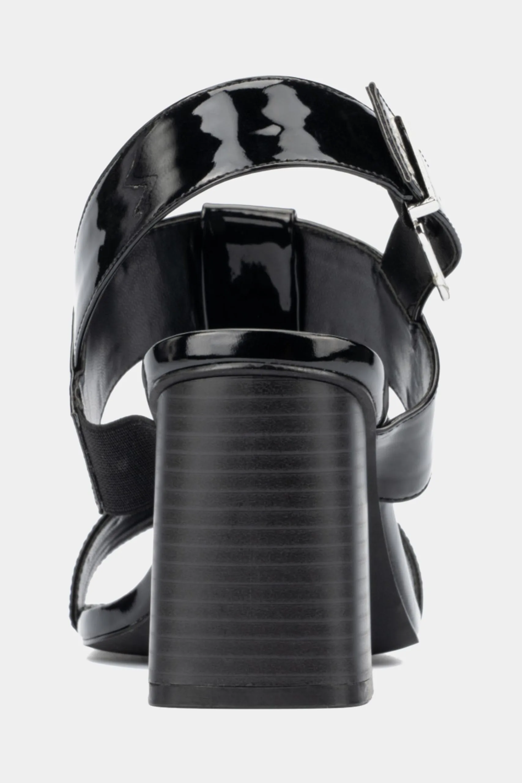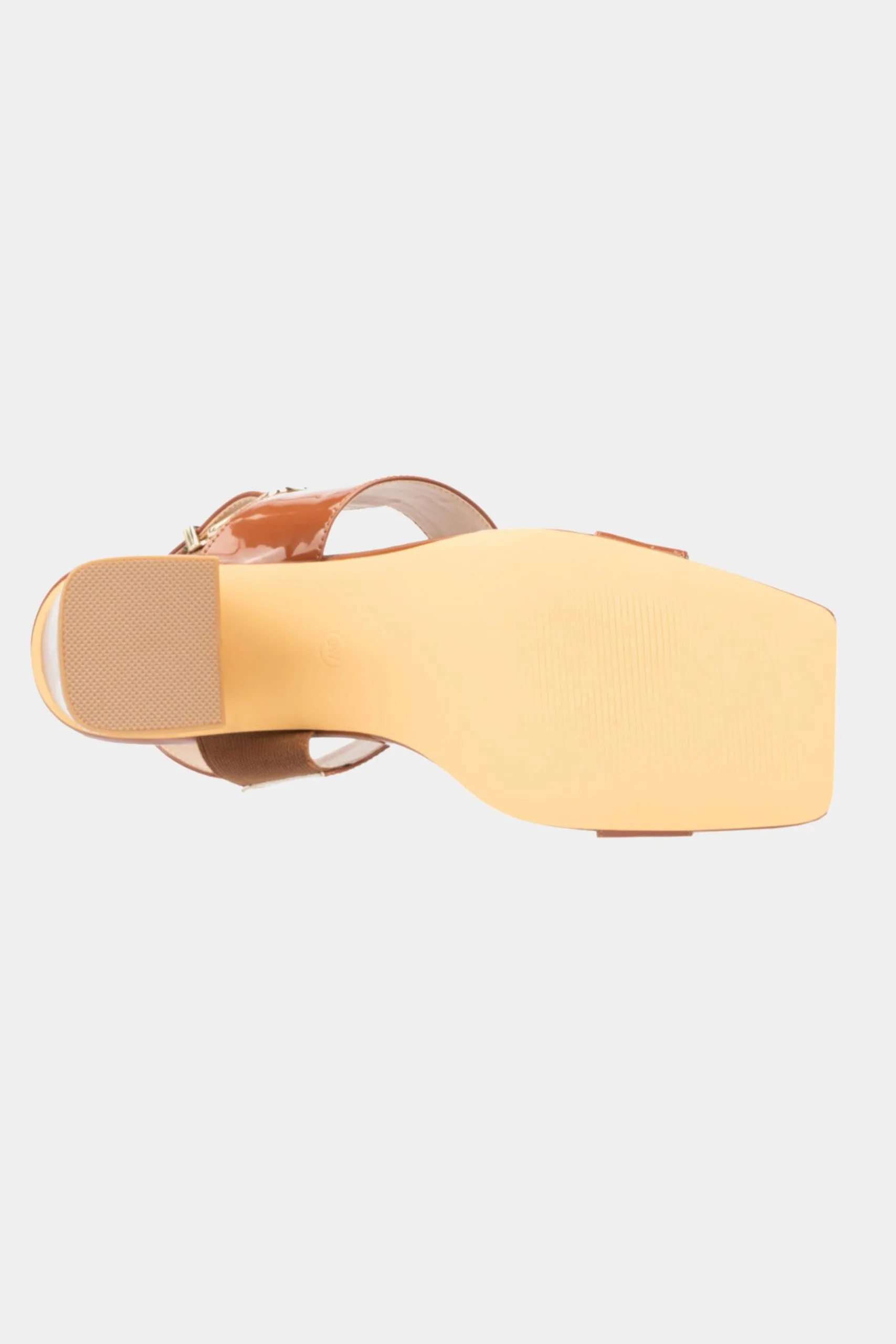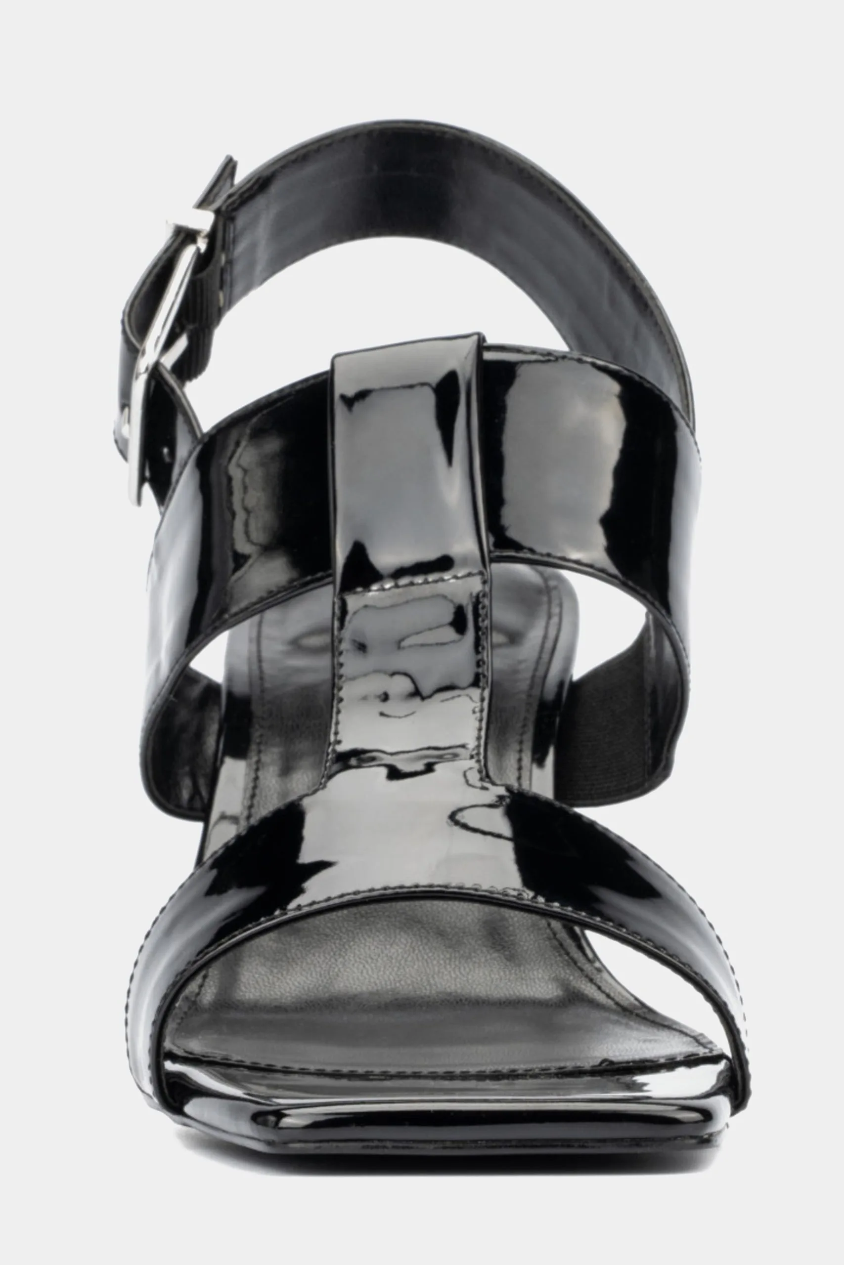 - Strappy upper with a shiny look
