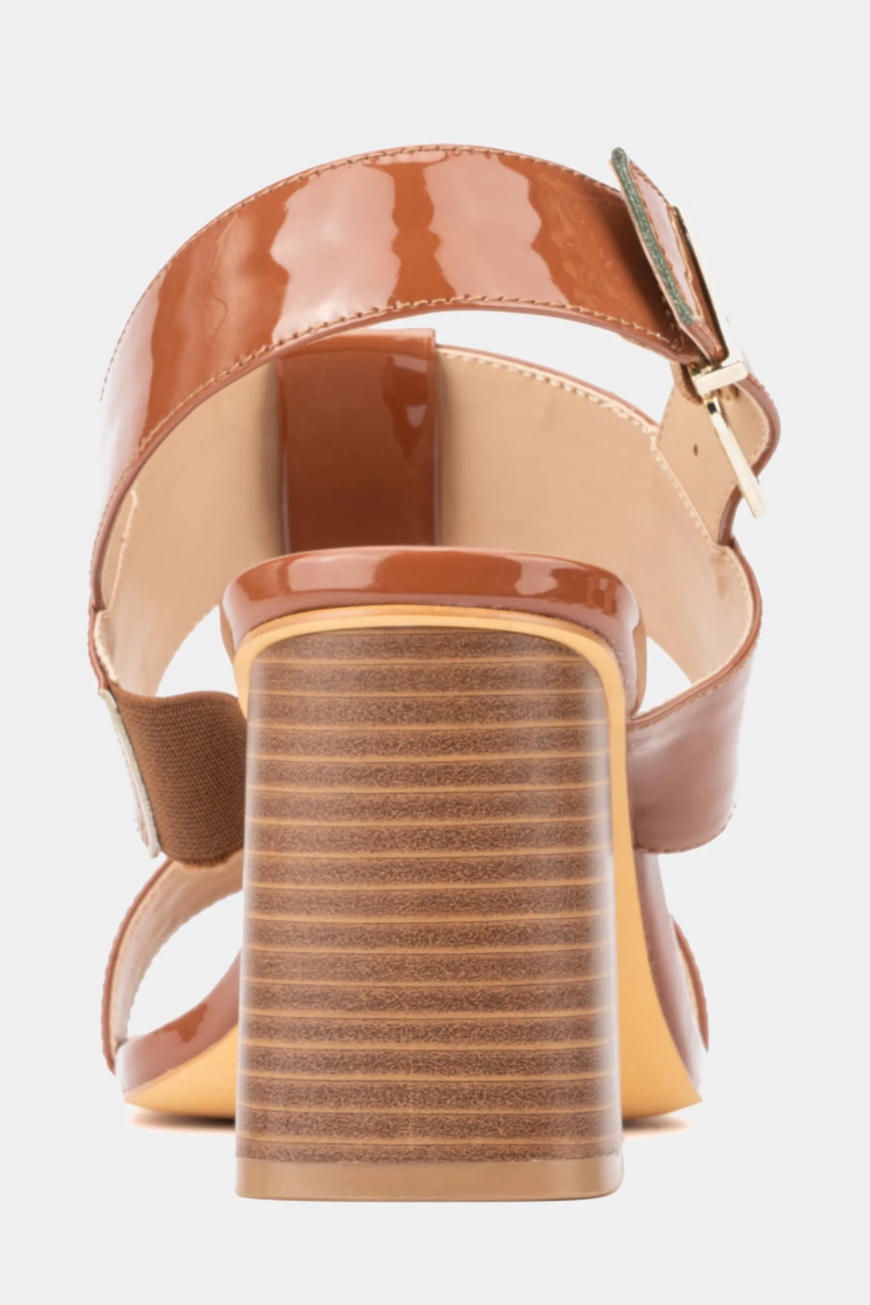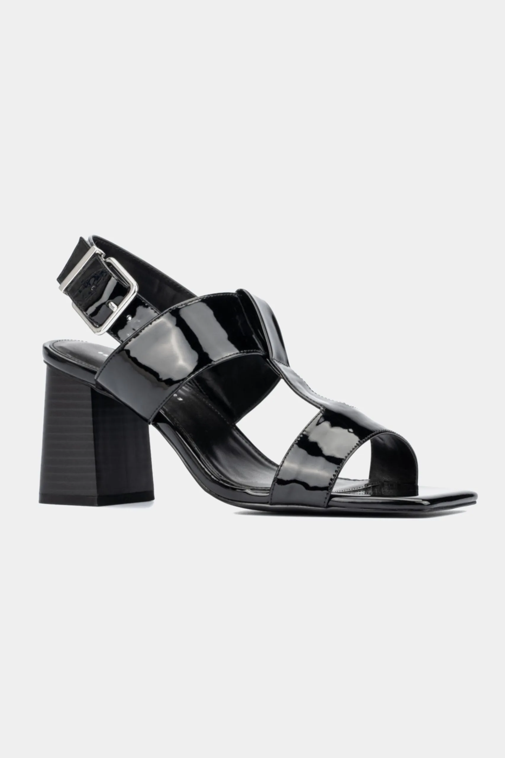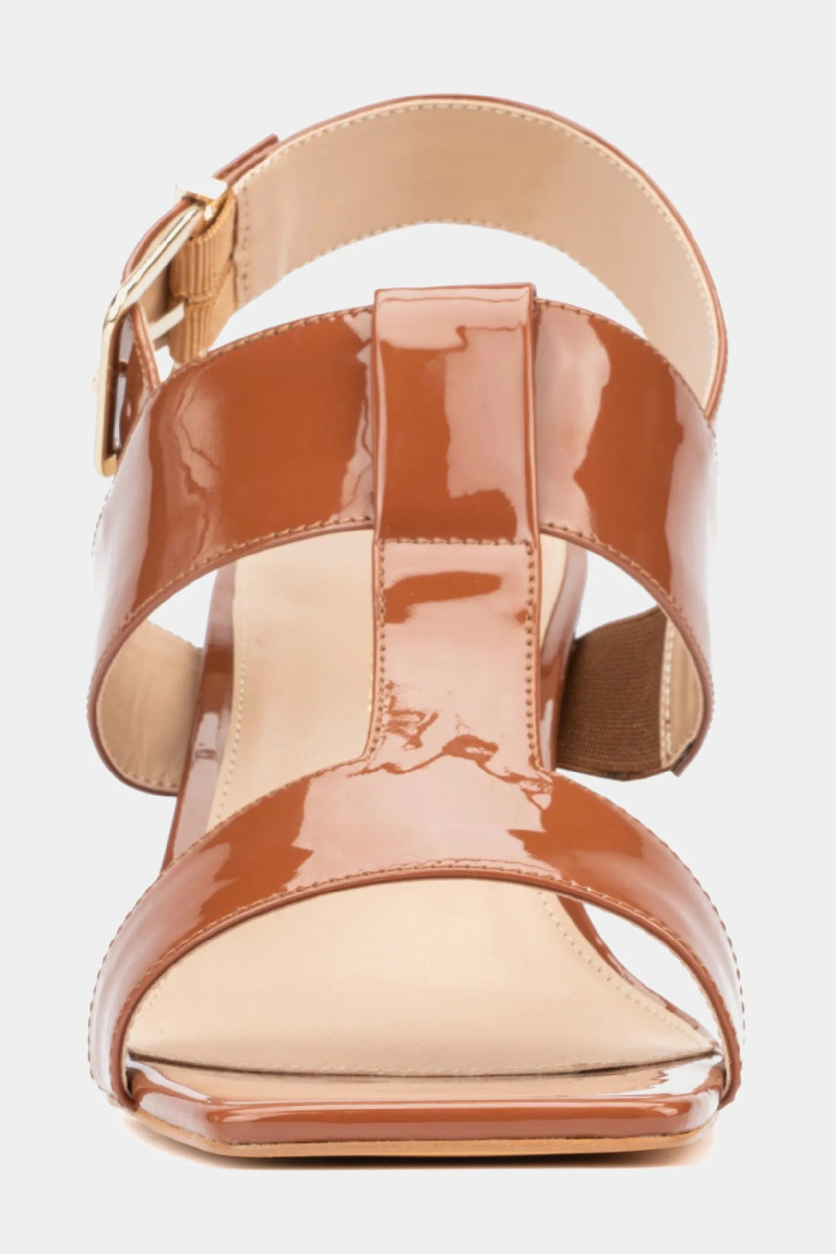 - Strappy upper with a shiny look