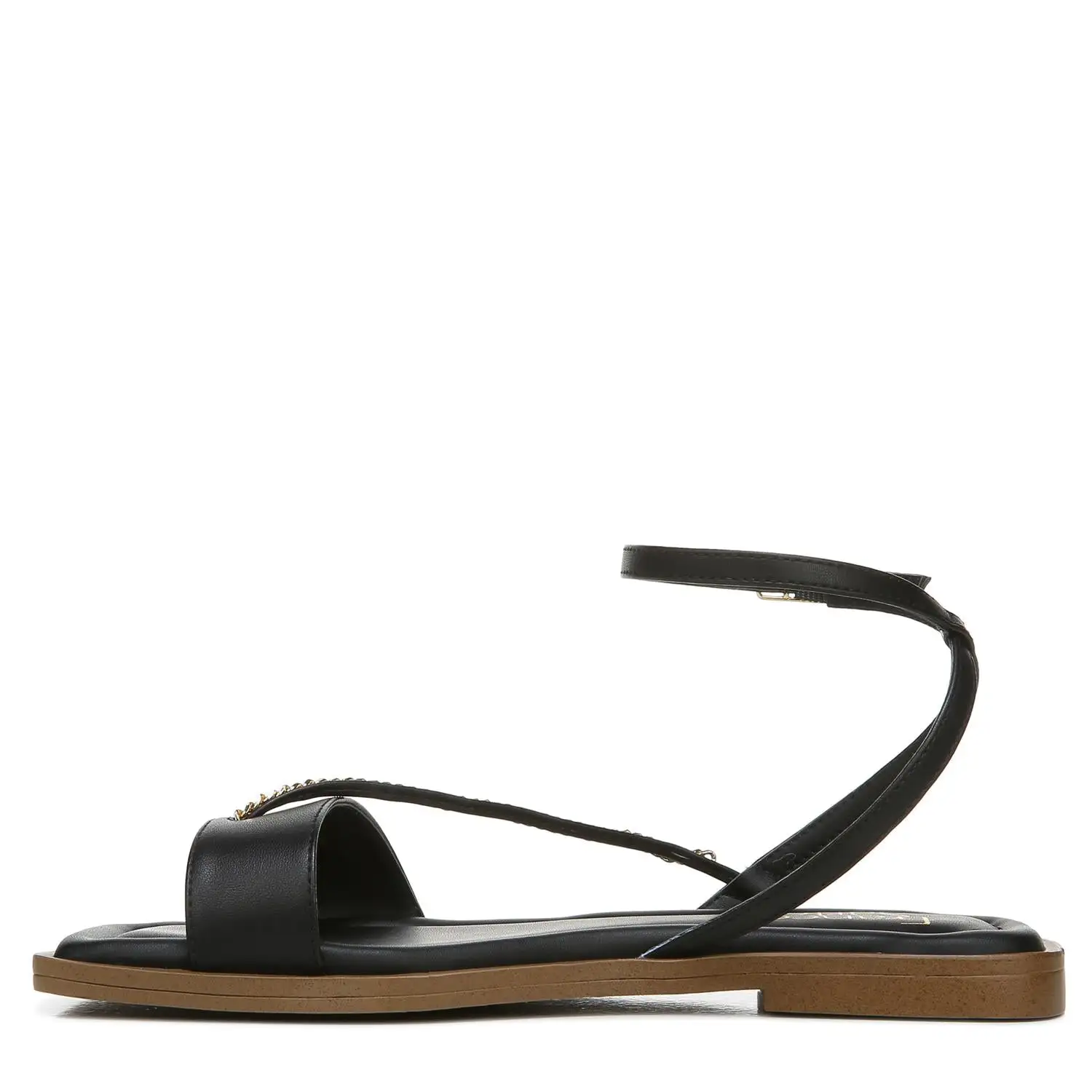 Crafted to stand out in the sun. These square-toed flat sandals look chic anywhere and everywhere. It features ankle strap, an adjustable buckle and an open toe.