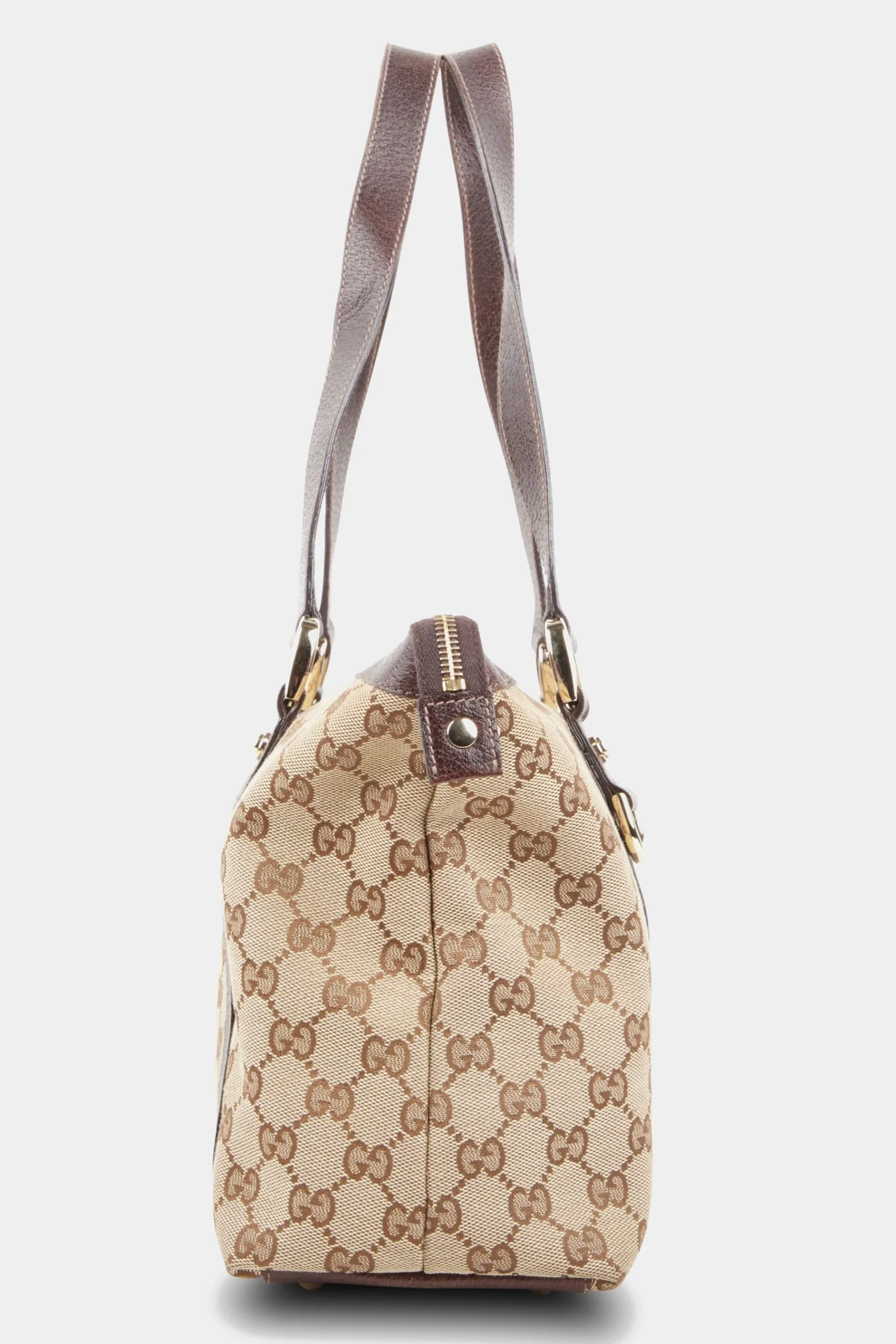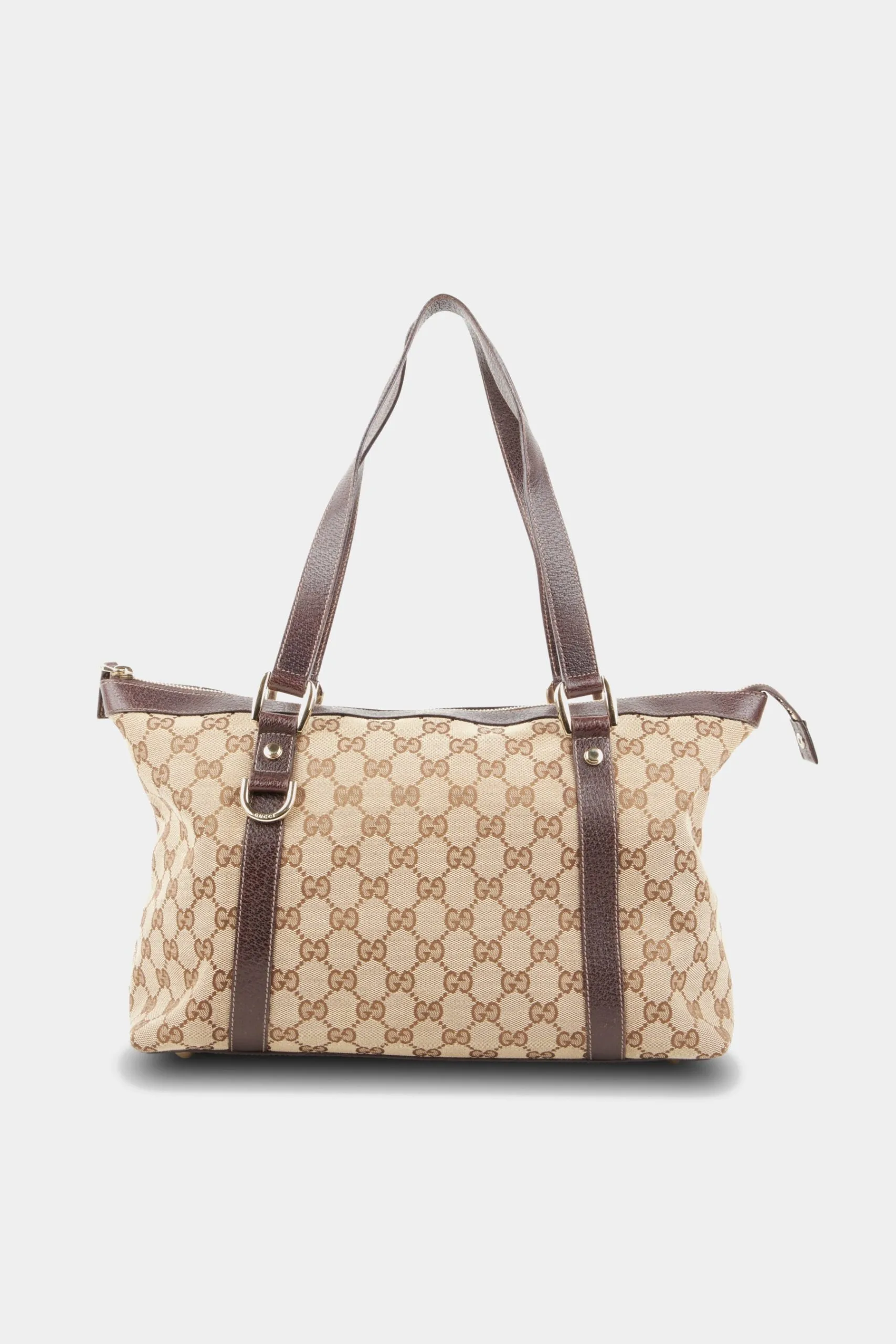The D-Gold Tote Bag is a stunning and elegant tote bag from Gucci, crafted in the illustrious GG Canvas print in brown canvas. It is a functional tote adorned with a spacious interior, leather shoulder straps, and a prominent gold-tone D-shaped ring on the front just below one of its handle’s anchors, making it the perfect companion for casual outings. Unless stated otherwise, the item does not come with original brand accessories.