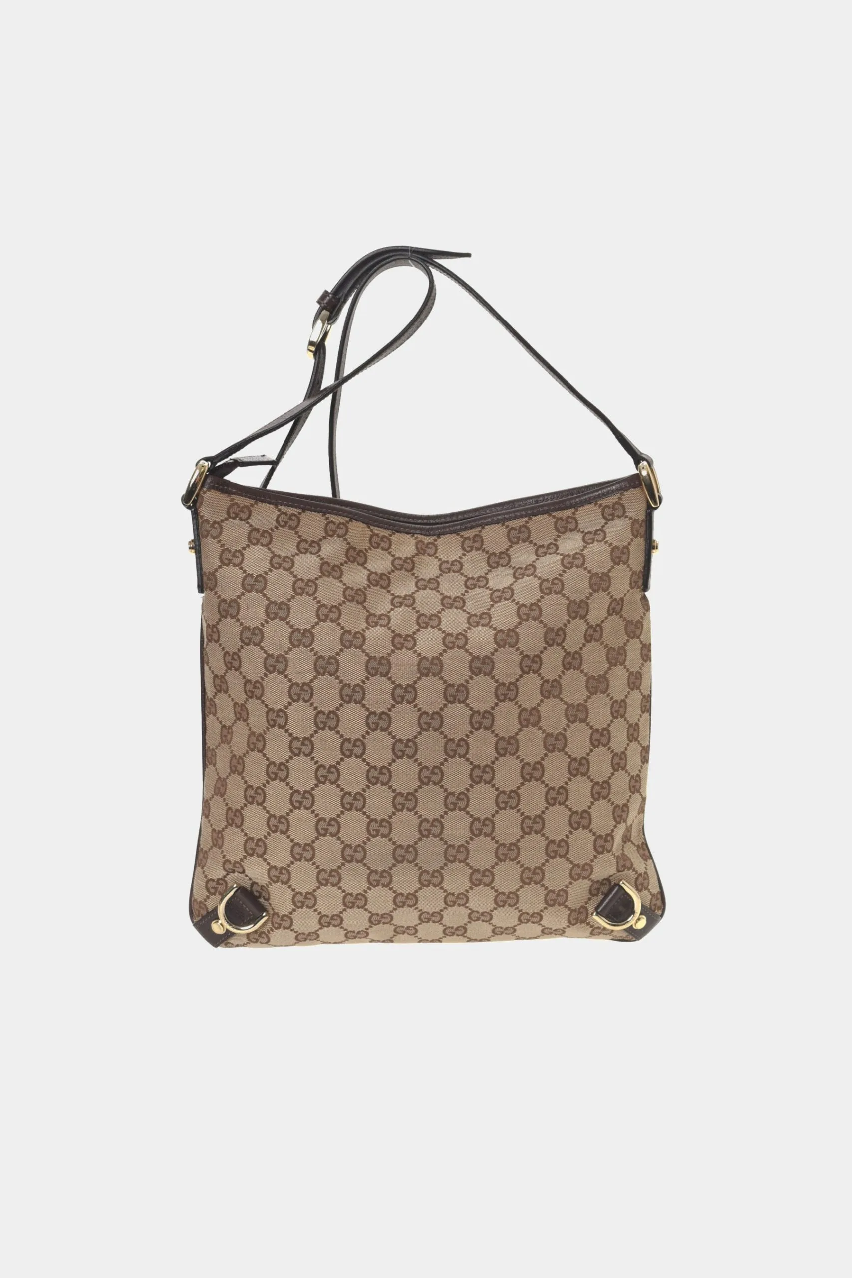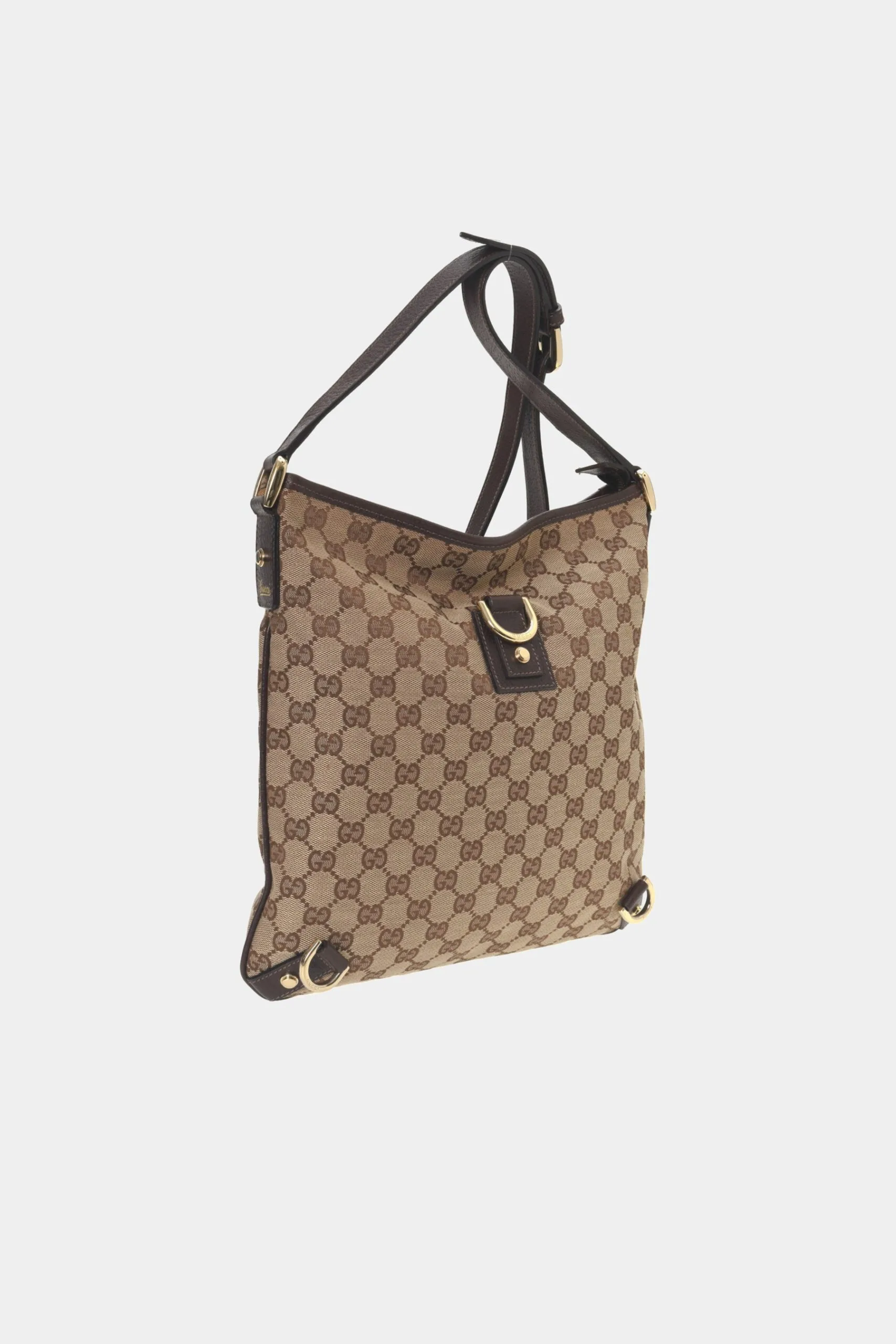 Upgrade your closet with this sought-after luxury Gucci Abbey Crossbody Bag satchel. This à la mode second-hand satchel in beige is made in gg canvas.