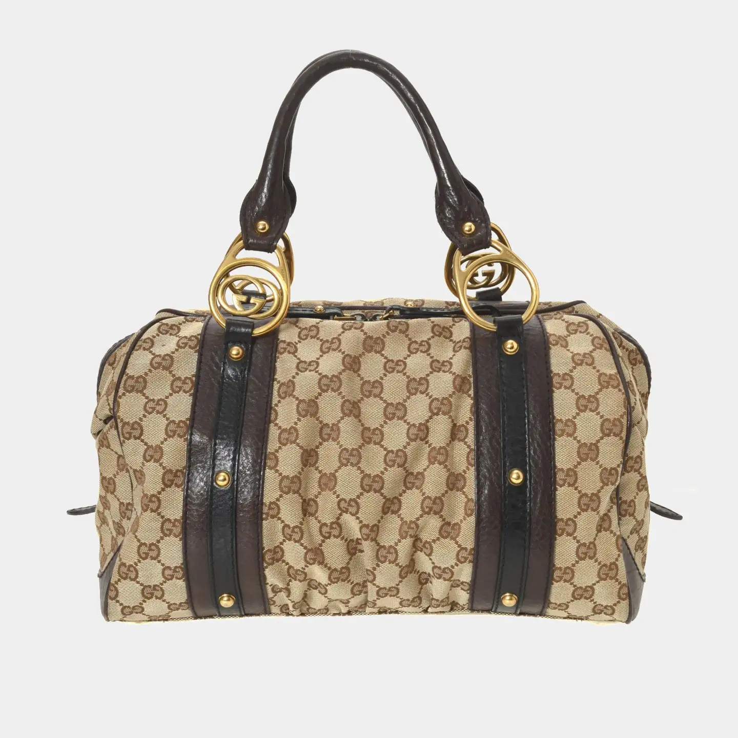 This pre-loved Gucci GG Canvas Interlocking G Boston Bag is crafted in GG Canvas. This iconic Handbag comes in beautiful Beige.