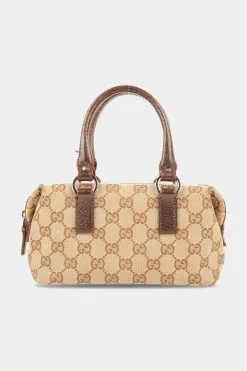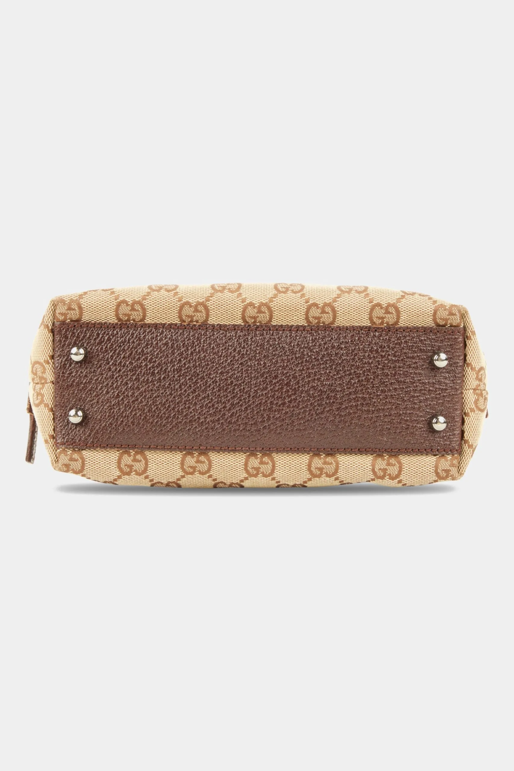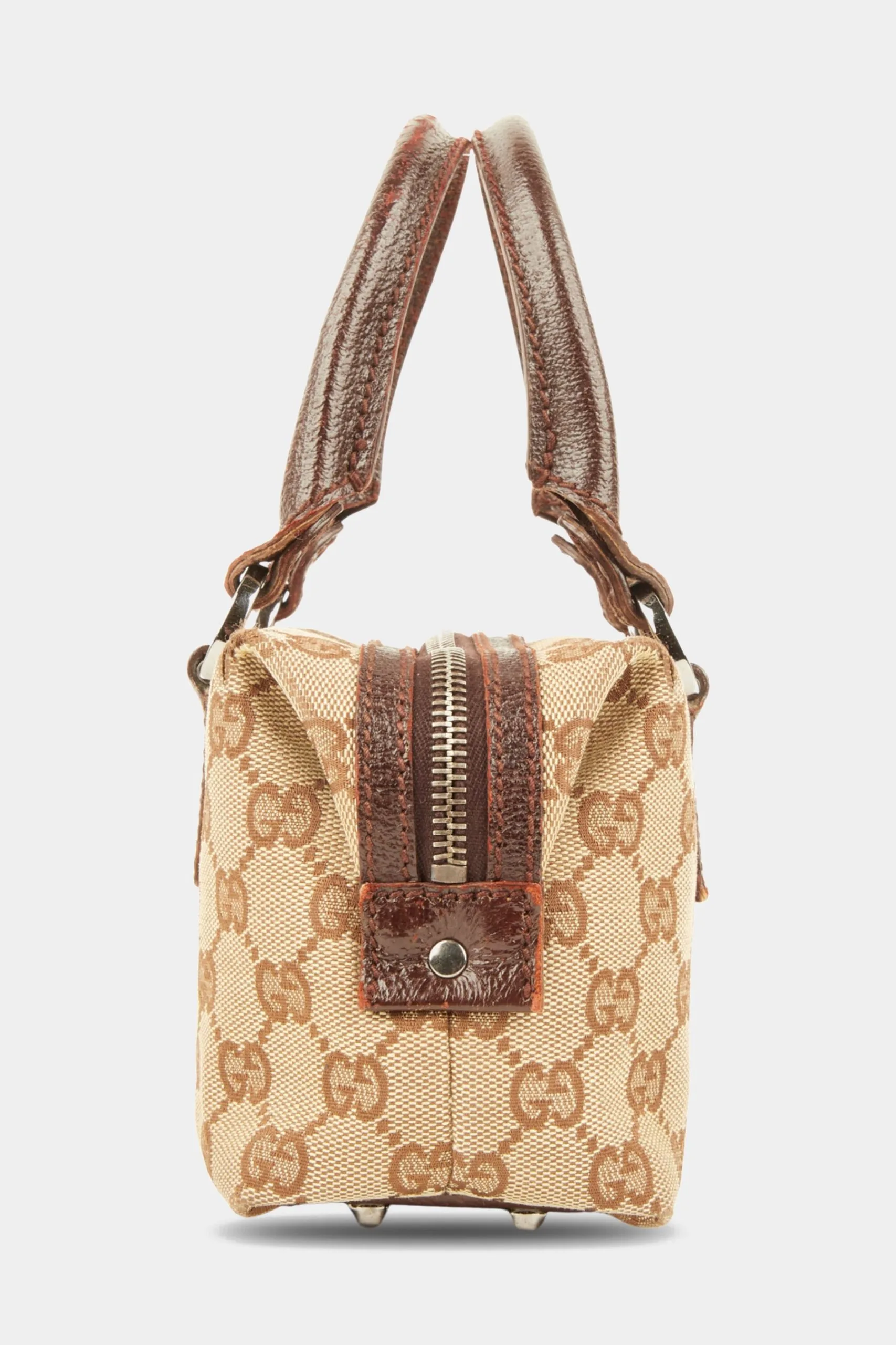 This Mini Handbag is a sophisticated bag from Gucci, crafted in the renowned GG Canvas print in brown. Adorned with gorgeous rolled leather handles, it has a charming and compact structure that is perfect for carrying just the essentials with you. Unless otherwise stated, the item does not come with original brand accessories.
