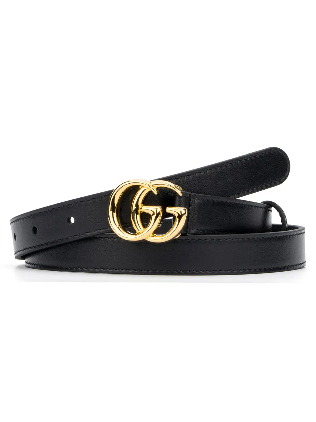 The emblematic Double G is reintroduced for Spring Summer 2020 in a luminous gold-tone, set on a smooth black leather belt.