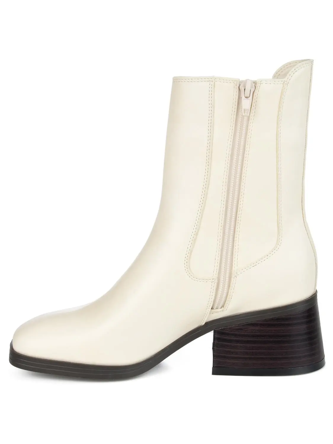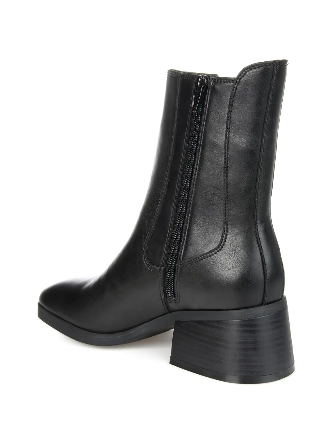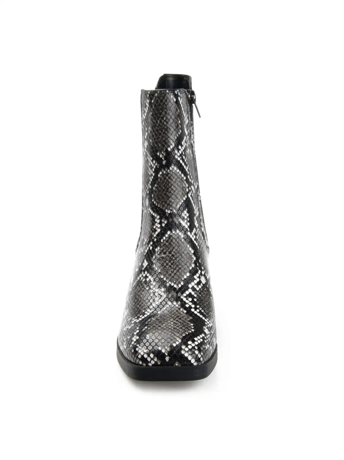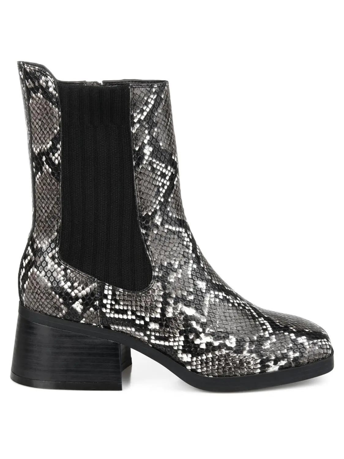 Cool contemporary details define the Desree by Journee Collection. A stretch knit panel and an inside zipper accent this square-toe bootie. A low heel paired with a 4 mm Tru Comfort Foam™ footbed finish this vegan leather silhouette.