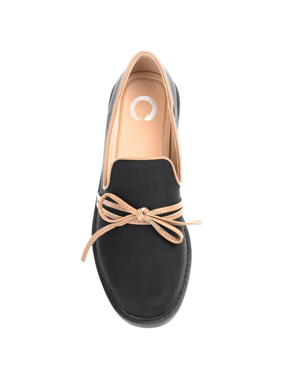 Kick your day off with a retro vibe in the Eilien by Journee Collection. This vegan leather loafer gives any outfit a charming finish with a round-toe and notches at the topline. A 4 mm Tru Comfort Foam™ footbed and a low block heel perfect this comfortable yet classy look.