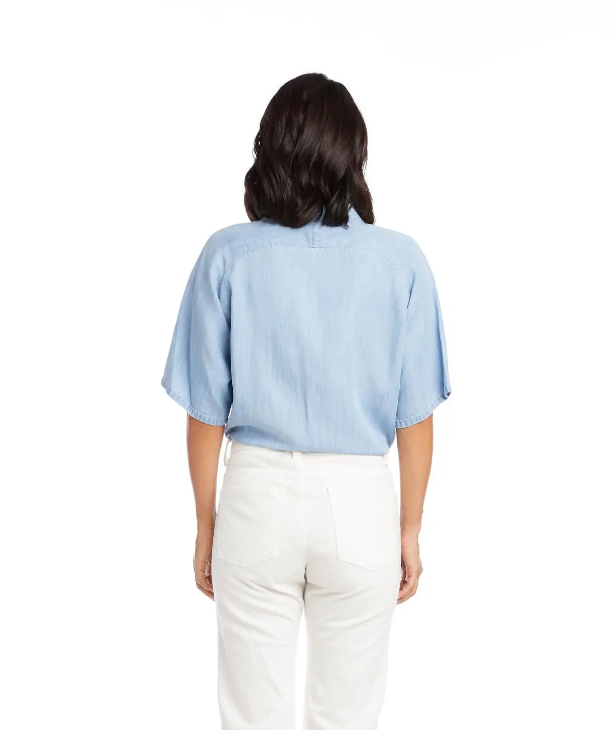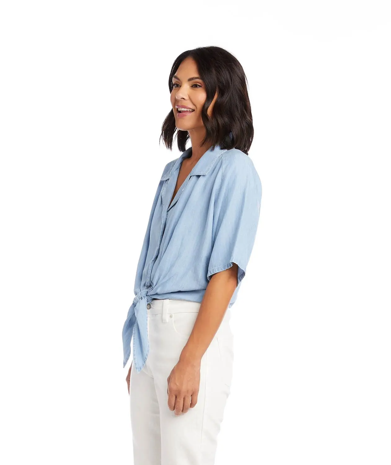 A collared top in soft, vintage-washed chambray. Crafted with short sleeves and a tie-front waist.