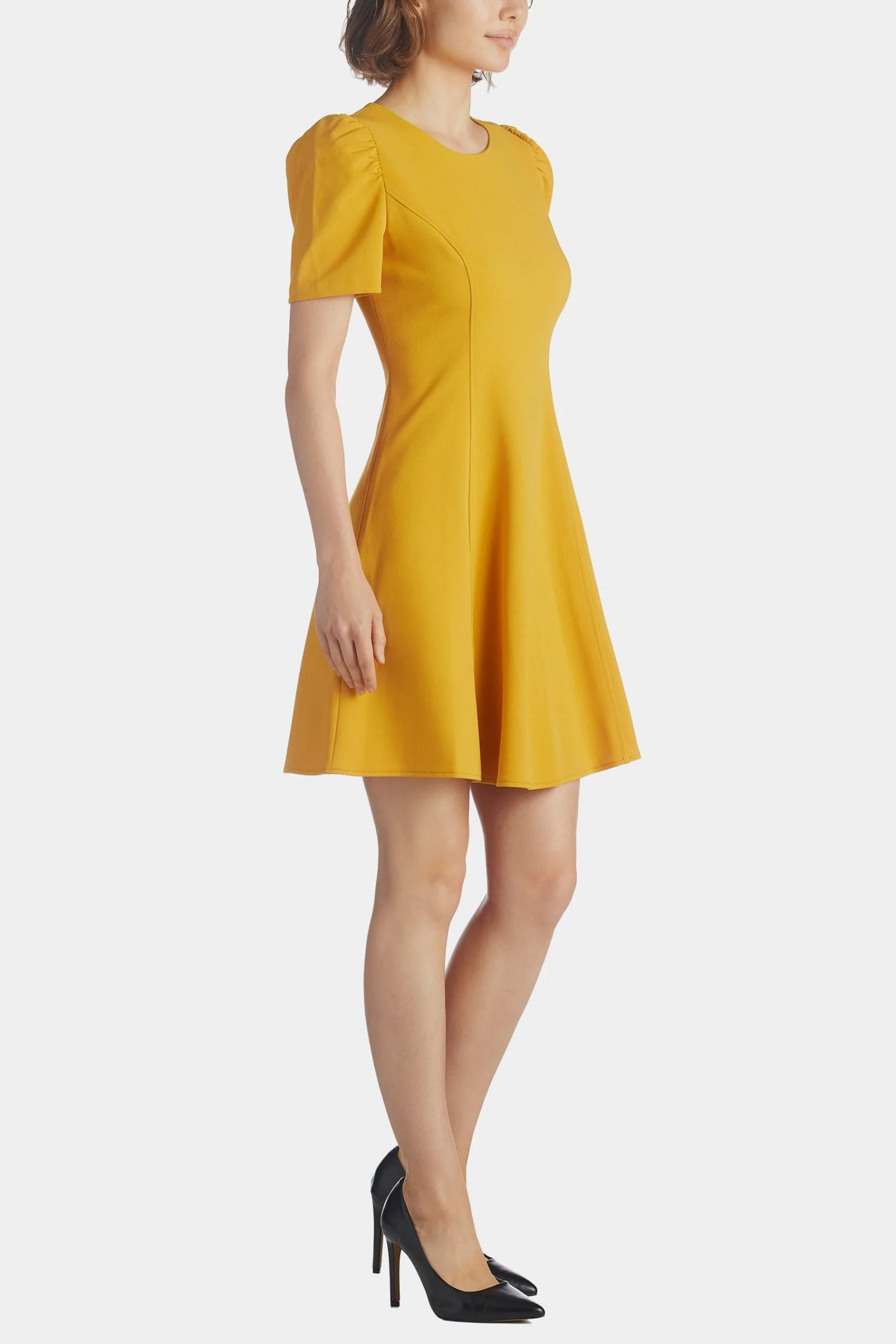 Scuba crepe a-line with puff sleeve