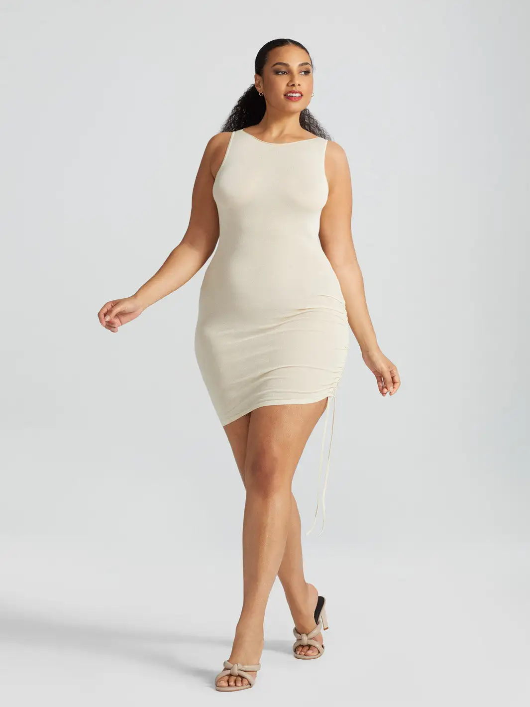 - Adjustable side ruching