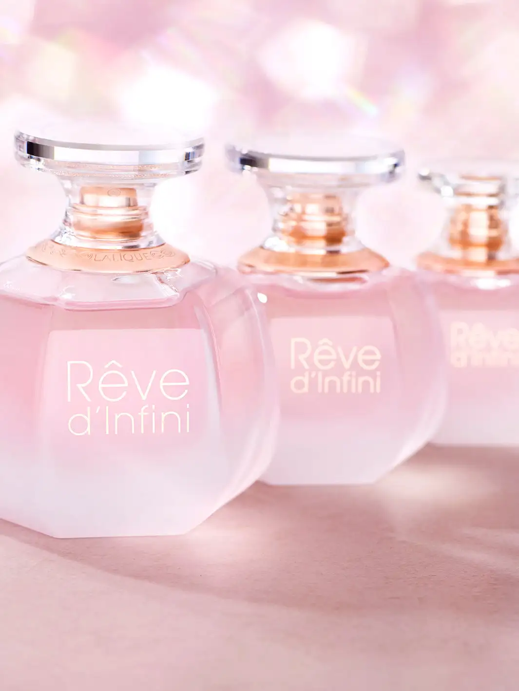 Rêve d’Infini, a sparkling, sensual fragrance, a bouquet of fresh flowers softened by satiny peach. A whispered dream, a quest for the Absolute, the Eternal Feminine signed Lalique.