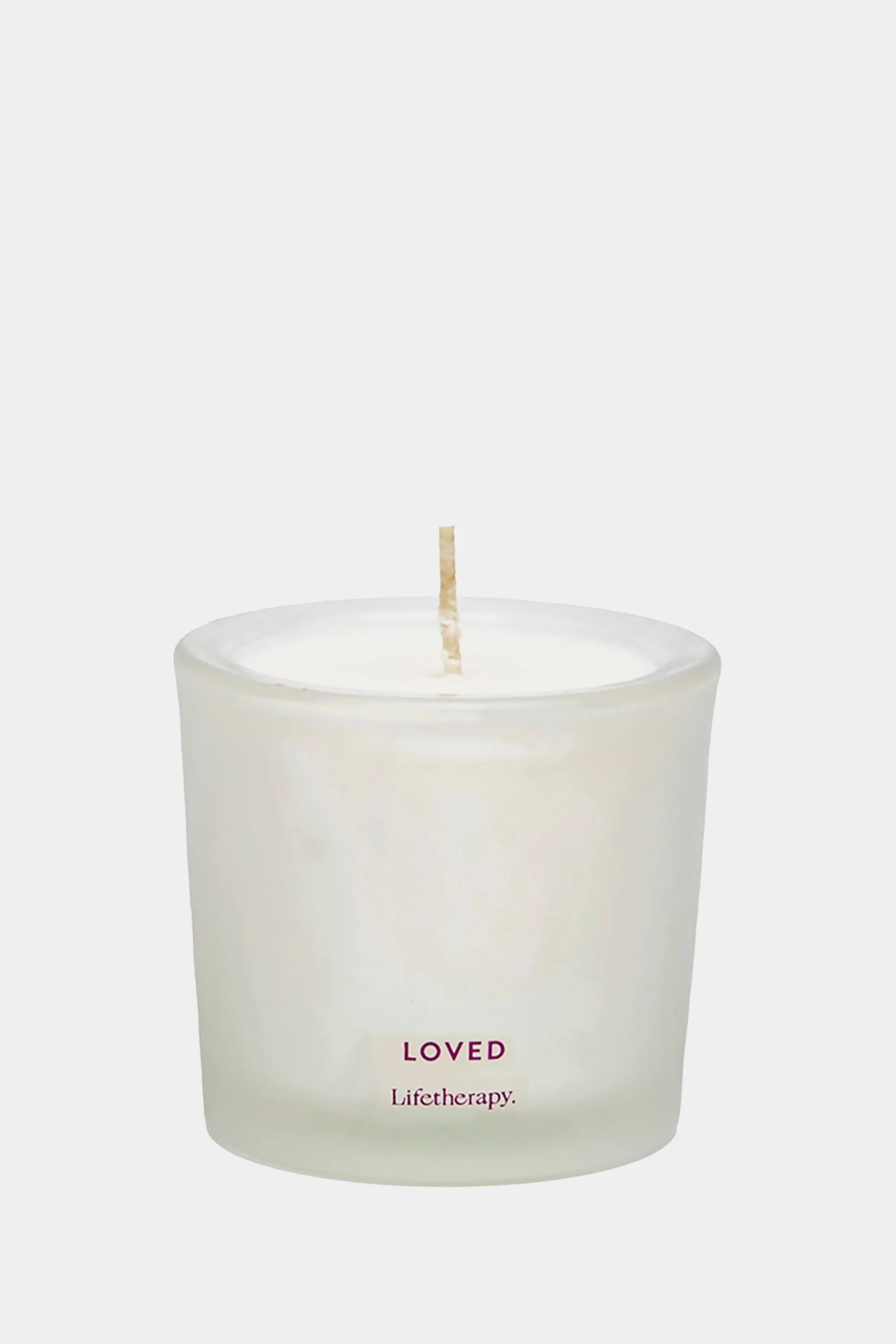 Set the mood with our new soy candle votives. Surround your home in warmth and compassion with Lifetherapy’s scented candle in Loved. Made using all soy wax from the Midwest, and metal-free cotton and paper wicks in a heavy reusable glass container.