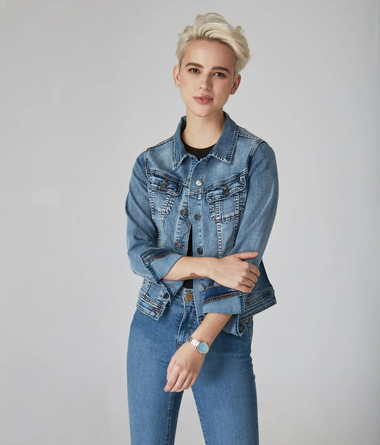 Gabriella is a classic jacket in premium stretch denim. Everyone needs a denim jacket, and ours is cut just right, and shockingly comfortable. This one will quickly become a major staple in your wardrobe.