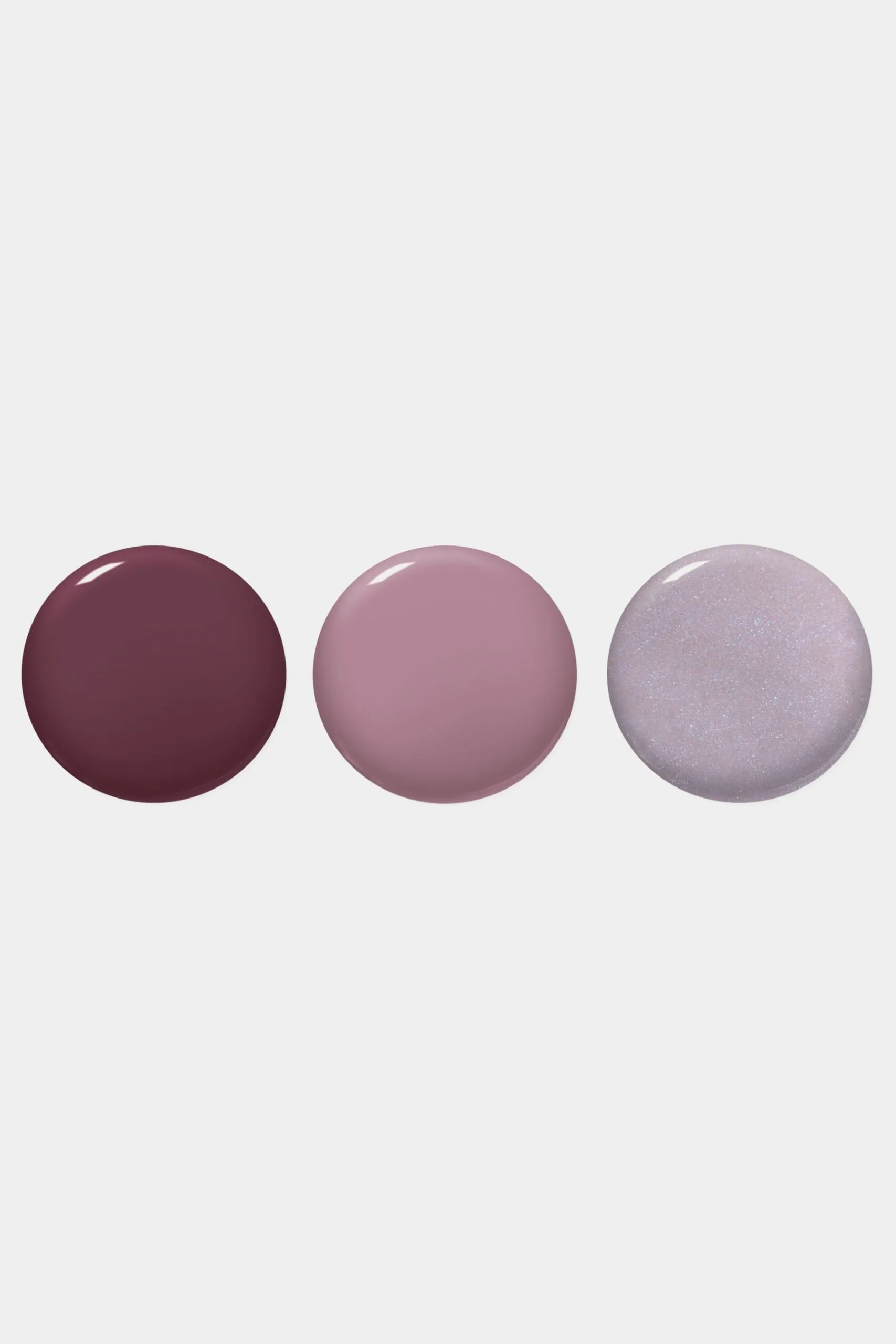 This set features a light, mid-tone, and deep shade so you have options no matter your mood: Opal is a shimmering lavender-griege as precious as its namesake, Bell Flower is a sophisticated dusty rose, and Save the Queen is your statement, mauve-tinged plum.