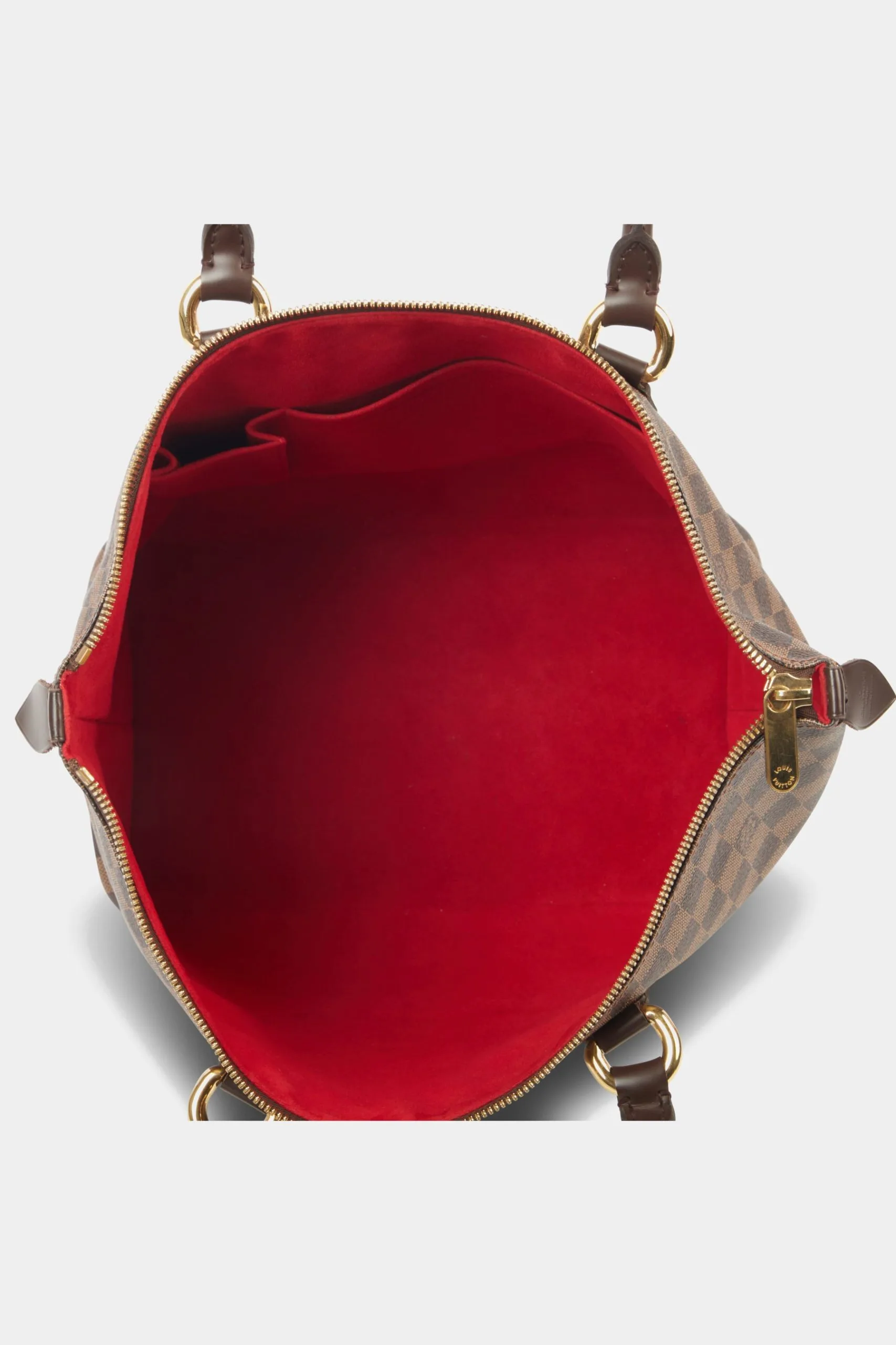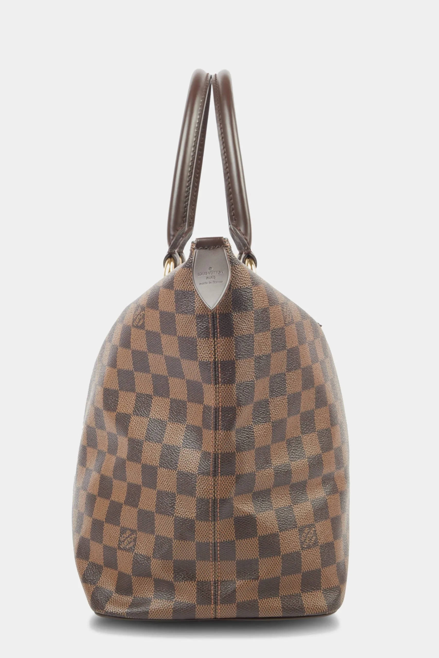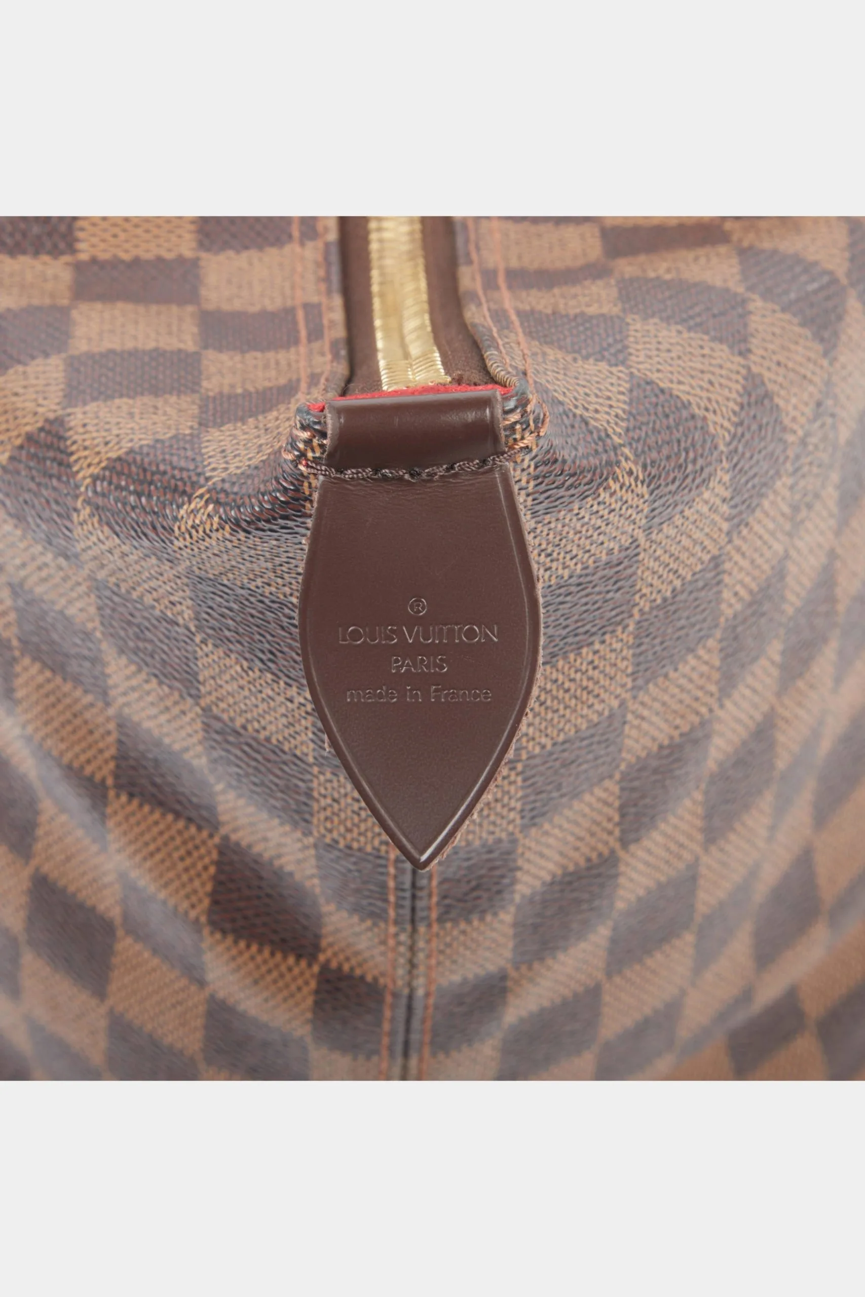 Crafted in the attractive checked Damier Ebene pattern in brown coated canvas, this Saleya MM is a stand-out tote bag from the house of Louis Vuitton. Named after the bustling flower and produce market in Nice, France, the Saleya MM tote bag is a charming yet spacious accessory. Its durable rolled leather top handles and brass top zipper closure make it a practical choice for carrying your essentials with ease and security. Unless otherwise stated, the item does not come with original brand accessories.