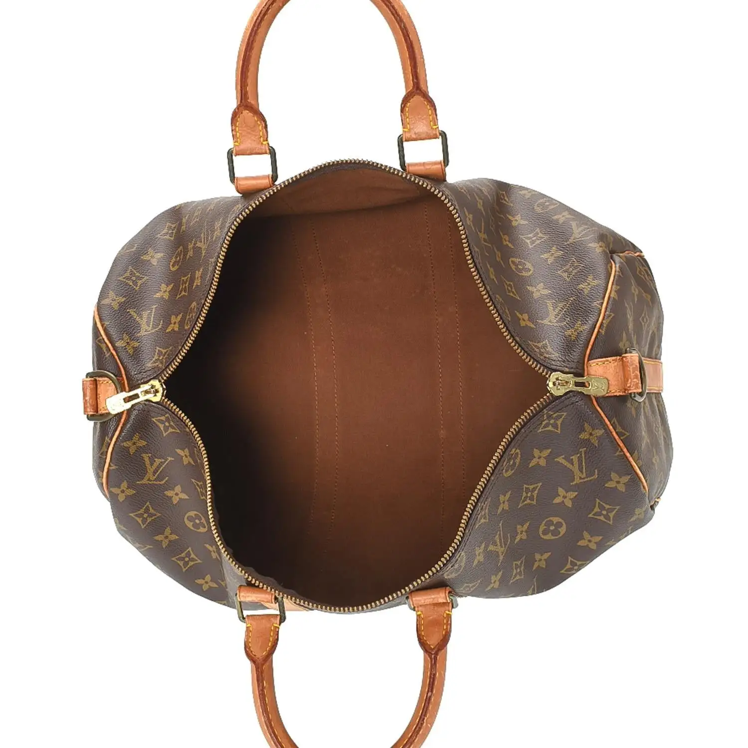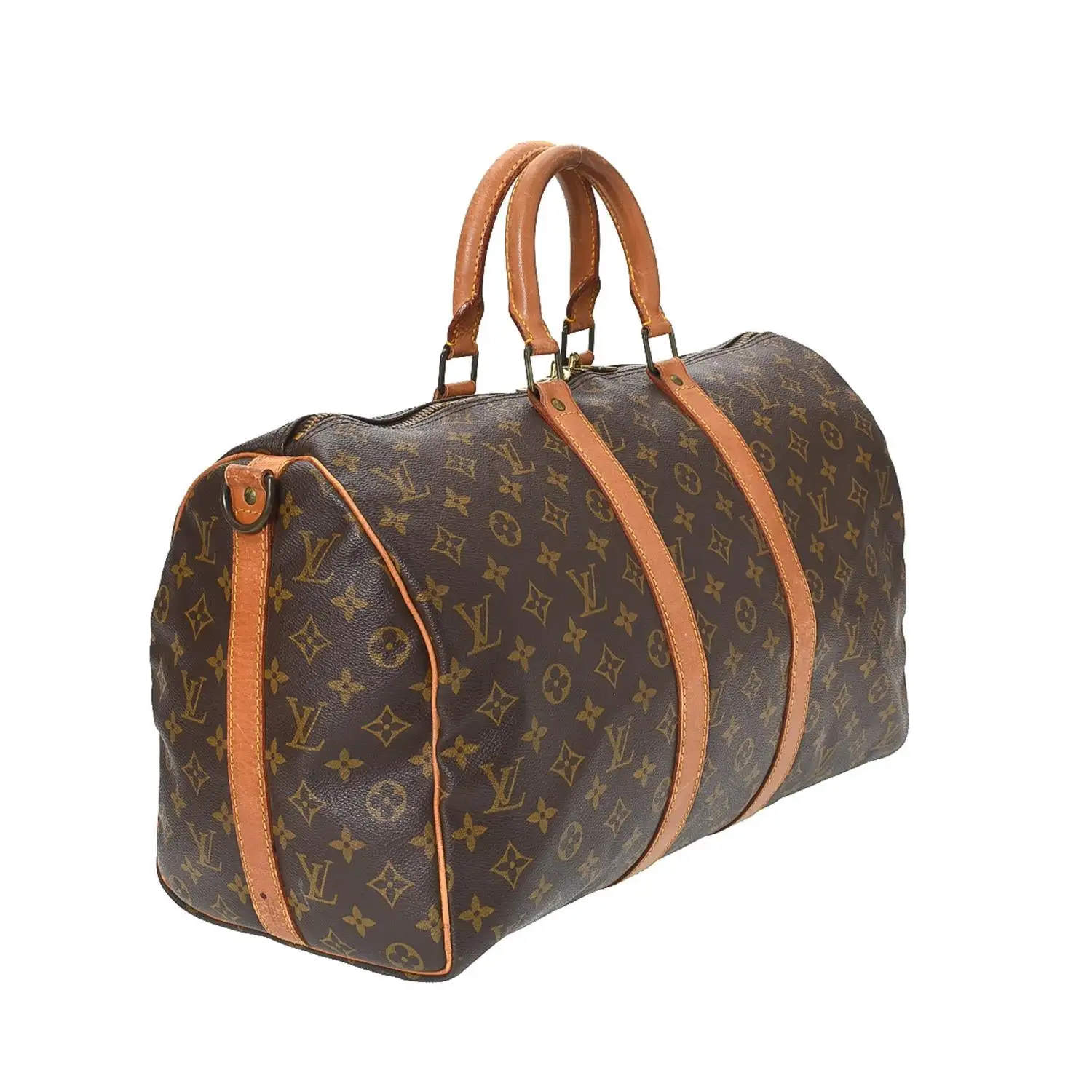 This pre-loved Louis Vuitton Keepall 45 Bandoulière is crafted in Monogram Coated Canvas. This iconic Travel Bag comes in beautiful Brown.