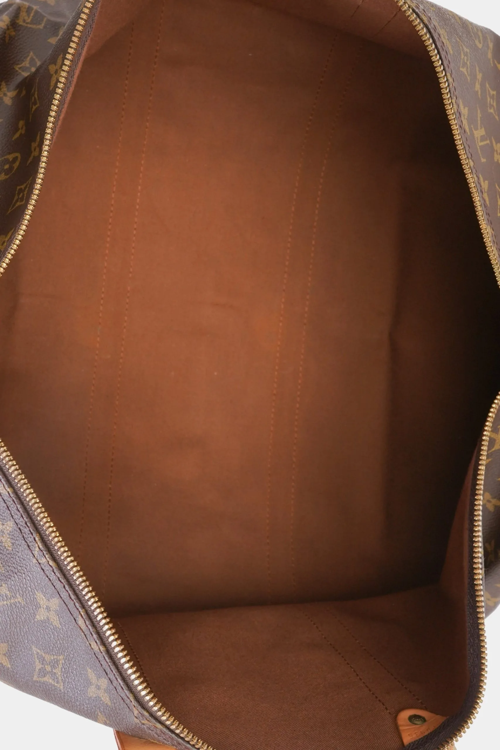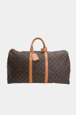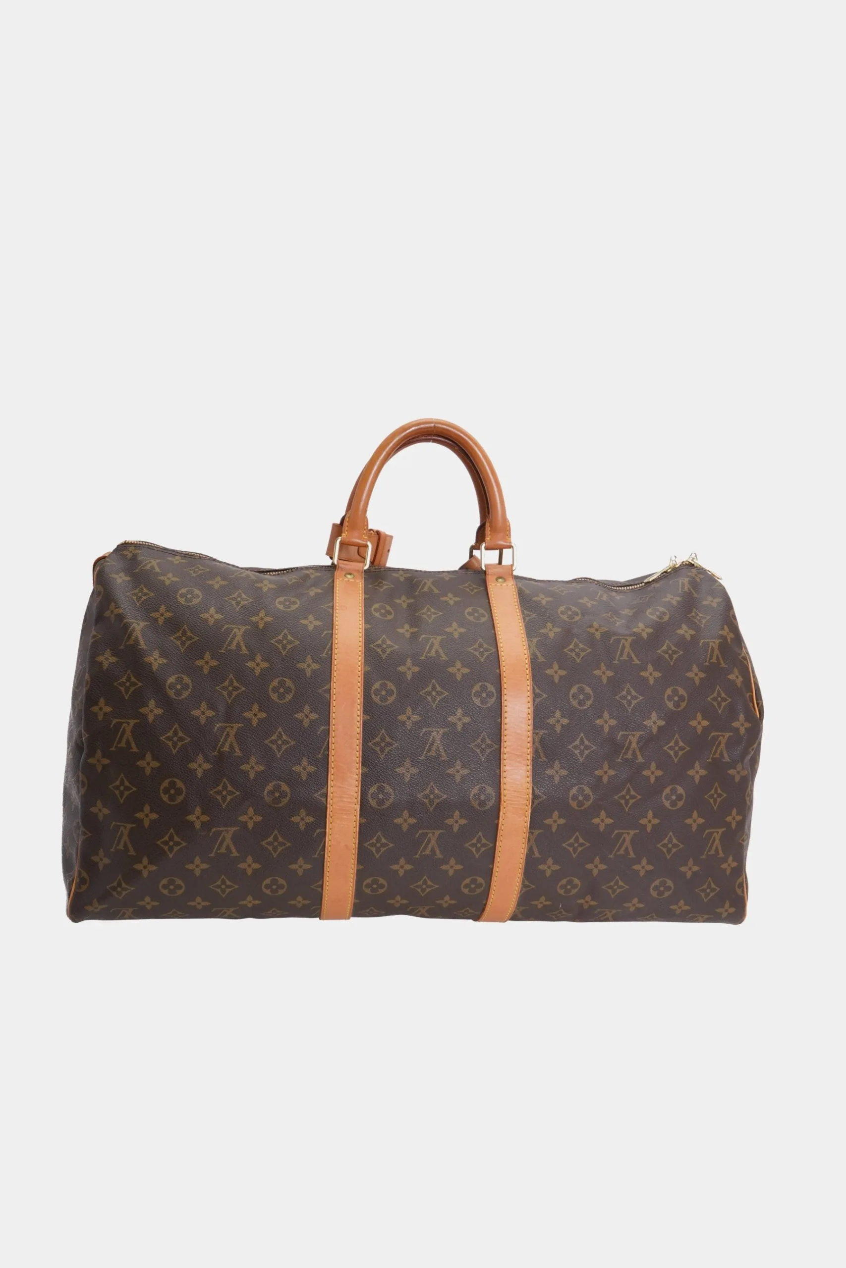 Celebrate your style with an authentic vintage Louis Vuitton Keepall handbag. This chic handbag in brown is made in coated canvas.