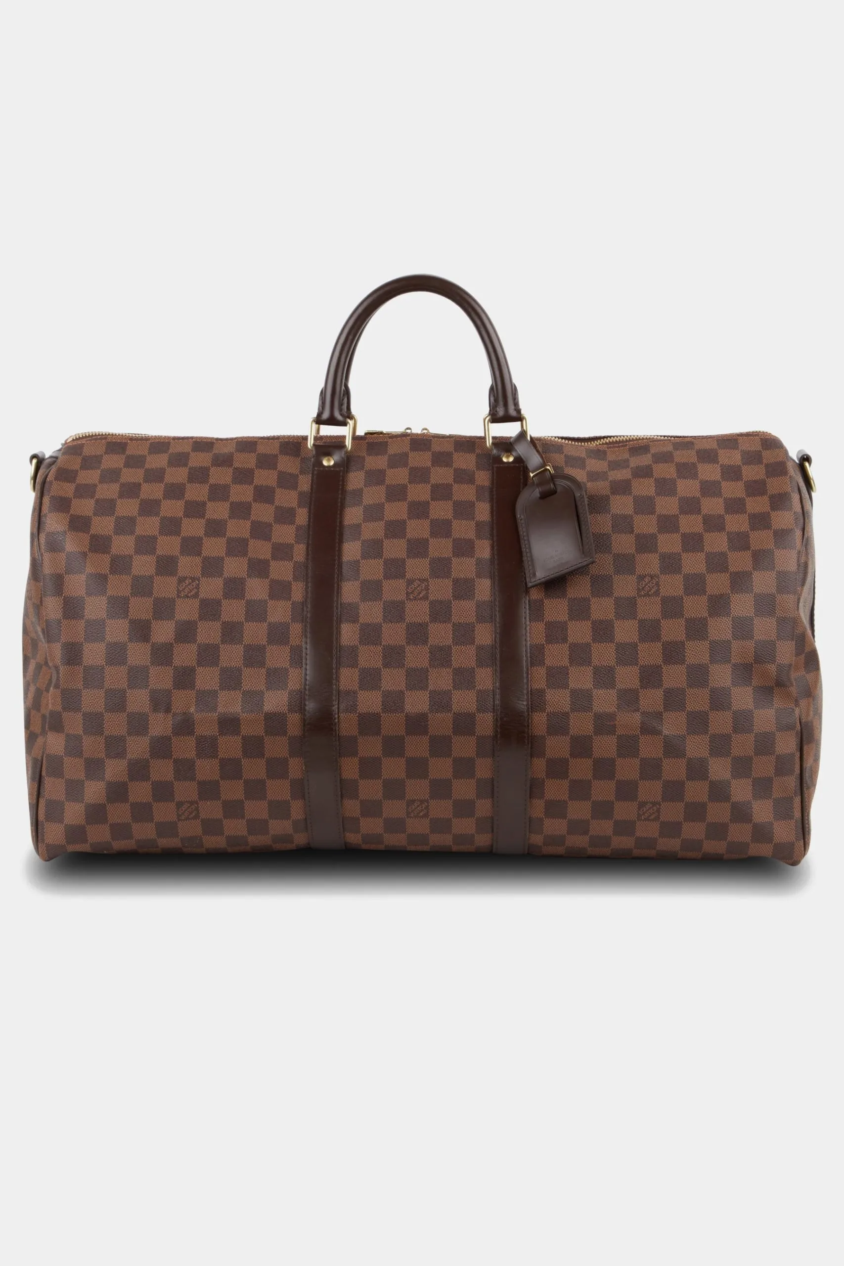 Upgrade your closet with this sought-after luxury Keepall Bandouliere 55 Damier Ebene Travel Bag. Crafted in coated canvas, this versatile bag has a compact yet surprisingly spacious interior that is perfect for carrying your essentials, making it a must-have bag for anyone with impeccable taste. Unless stated otherwise, the item does not come with original brand accessories.