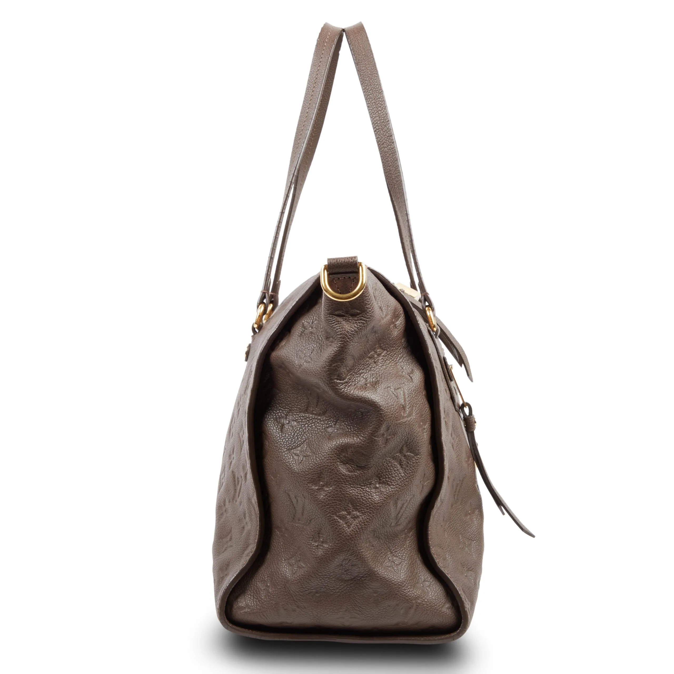 The Lumineuse PM is a stunning tote bag from Louis Vuitton, crafted in the coveted Monogram print embossed on the top-quality calfskin Empreinte Leather in grey. The Lumineuse PM is a contemporary and refined tote with a roomy interior perfect for carrying all your belongings in style and adorned with gold-tone hardware that makes the bag extra glamorous. Unless otherwise stated, the item does not come with original brand accessories.