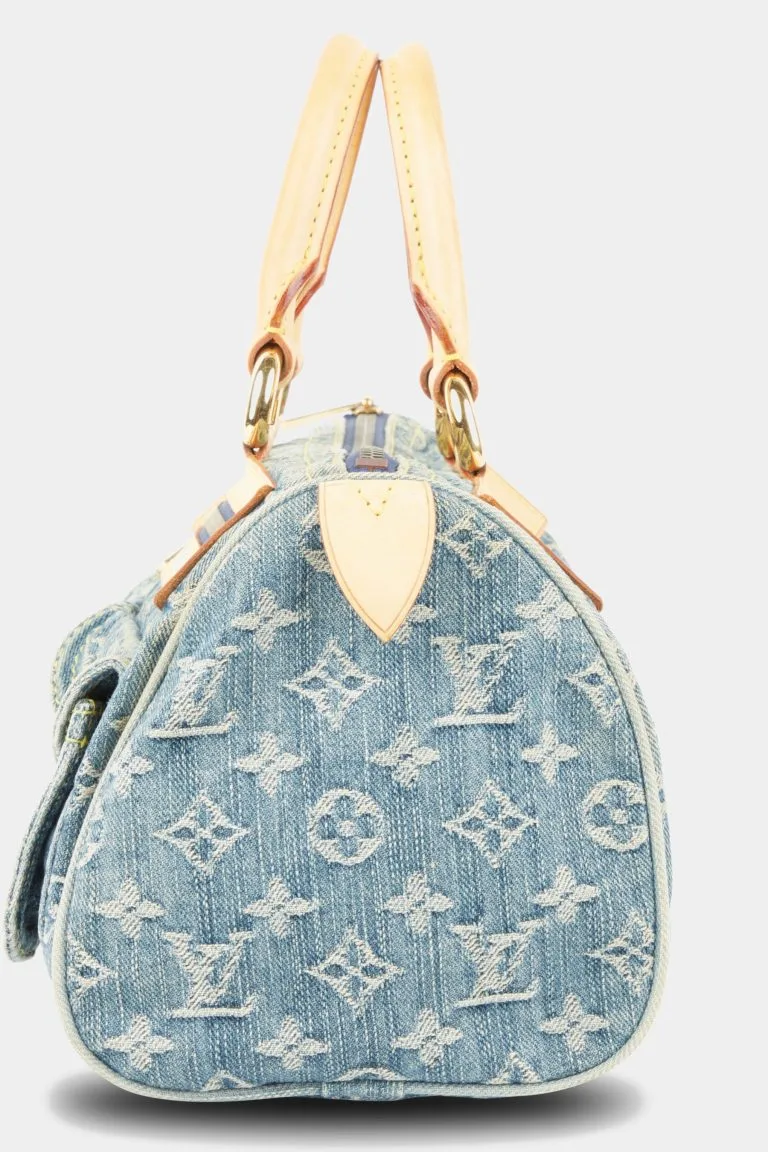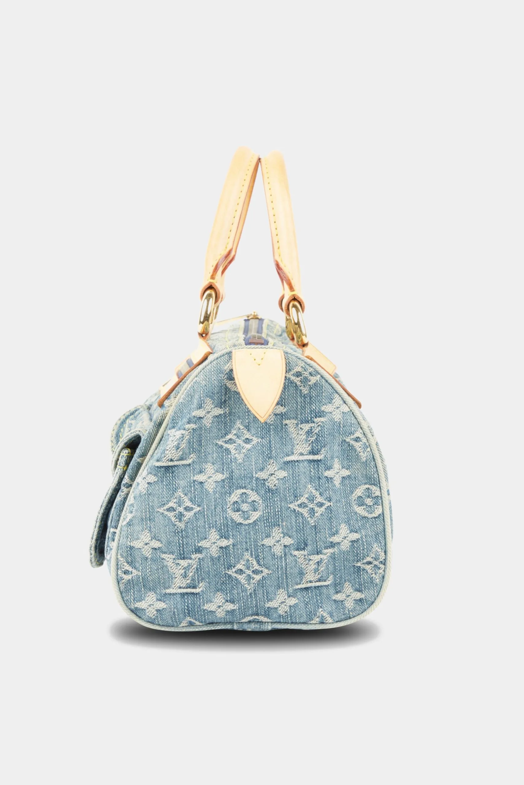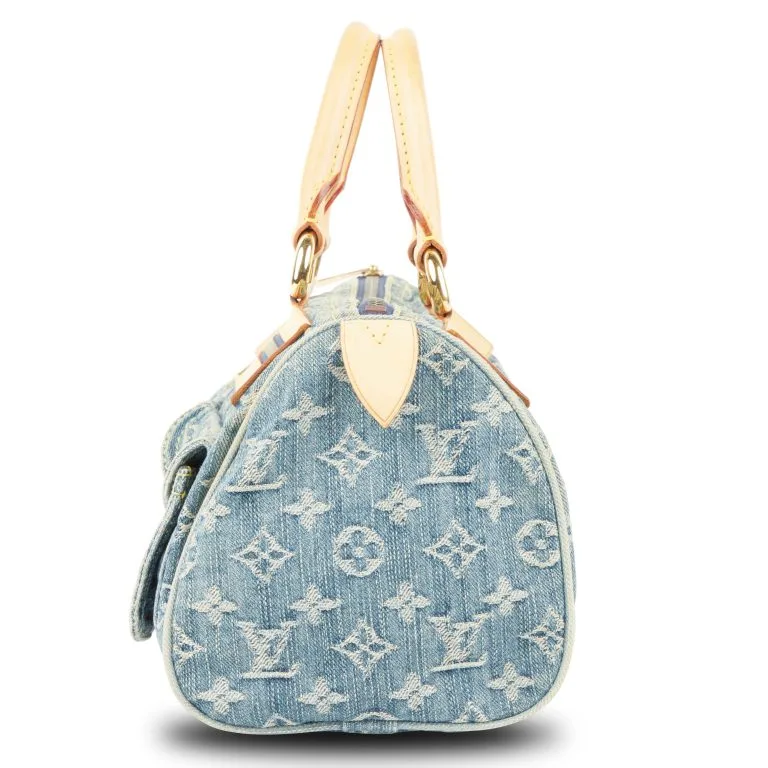 The Neo Speedy is a chic and eye-catching handbag from Louis Vuitton, crafted in the celebrated Monogram print in blue stonewashed denim. It is a stunning bag that will definitely turn heads thanks to its delightful structure with its distinctive two exterior pockets secured with push-locks and interior that can easily fit your essentials, adding a touch of casual elegance to any outfit. Unless otherwise stated, the item does not come with original brand accessories.