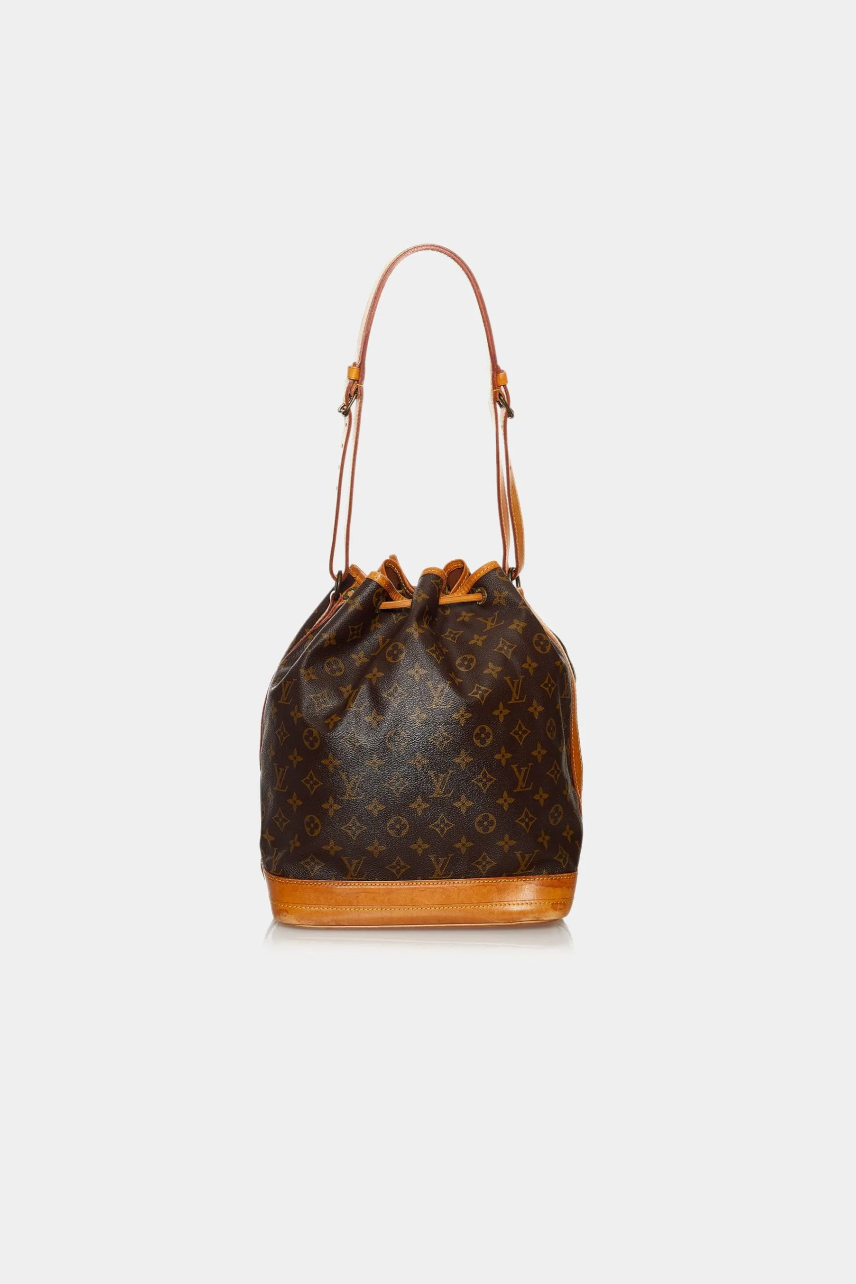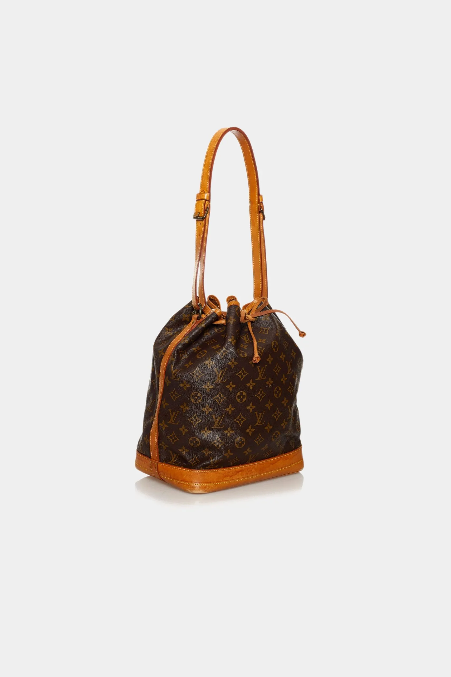 Upgrade your closet with this used Louis Vuitton Noe purse. This signature used purse in brown is made in monogram coated canvas.