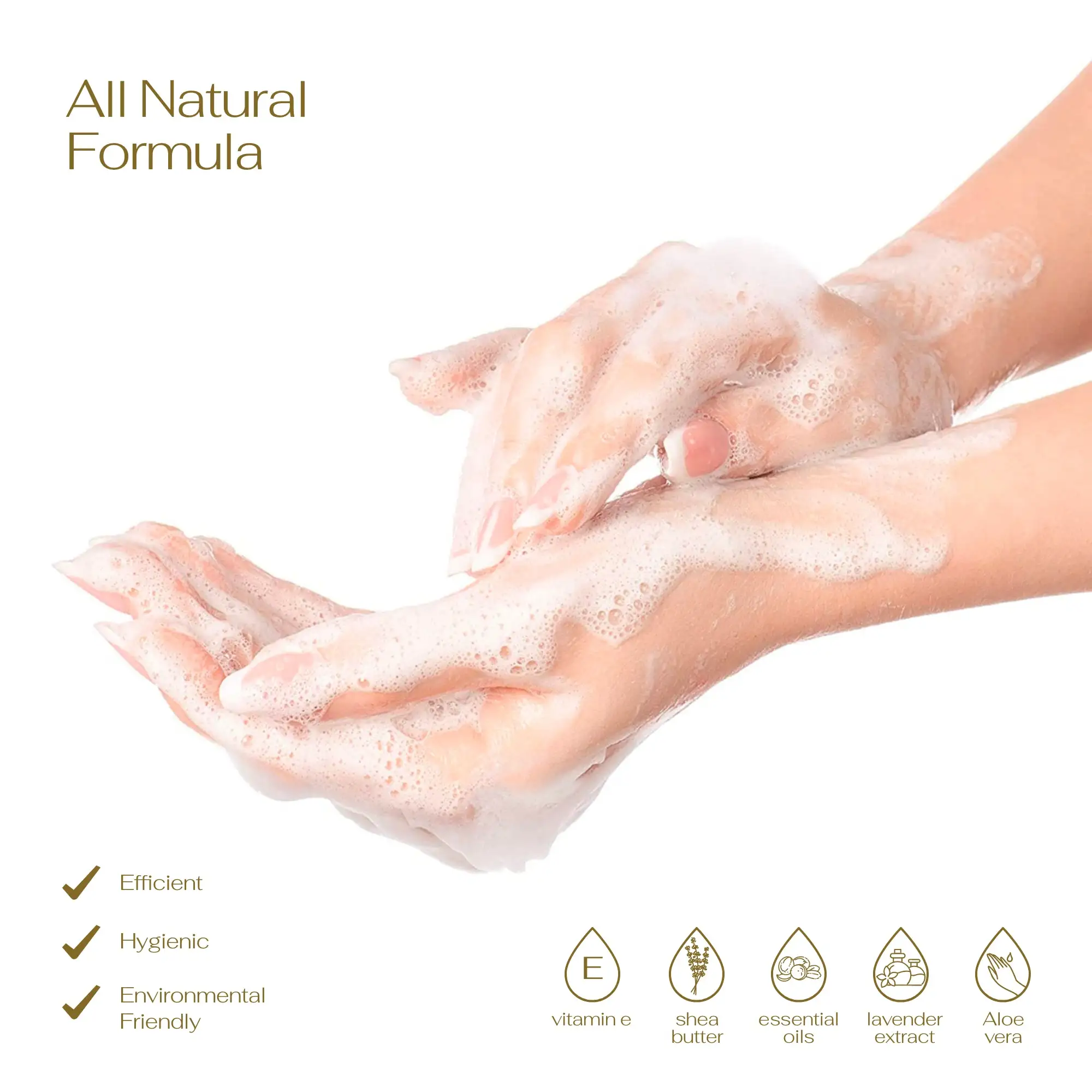Lovery Foaming Hand Soap is made with all-natural ingredients infused with Aloe Vera, Lavender Extract, Shea Butter, and Essential Oils. It contains zero Alcohol, Dye and Sulfate – making it suitable for all skin types.