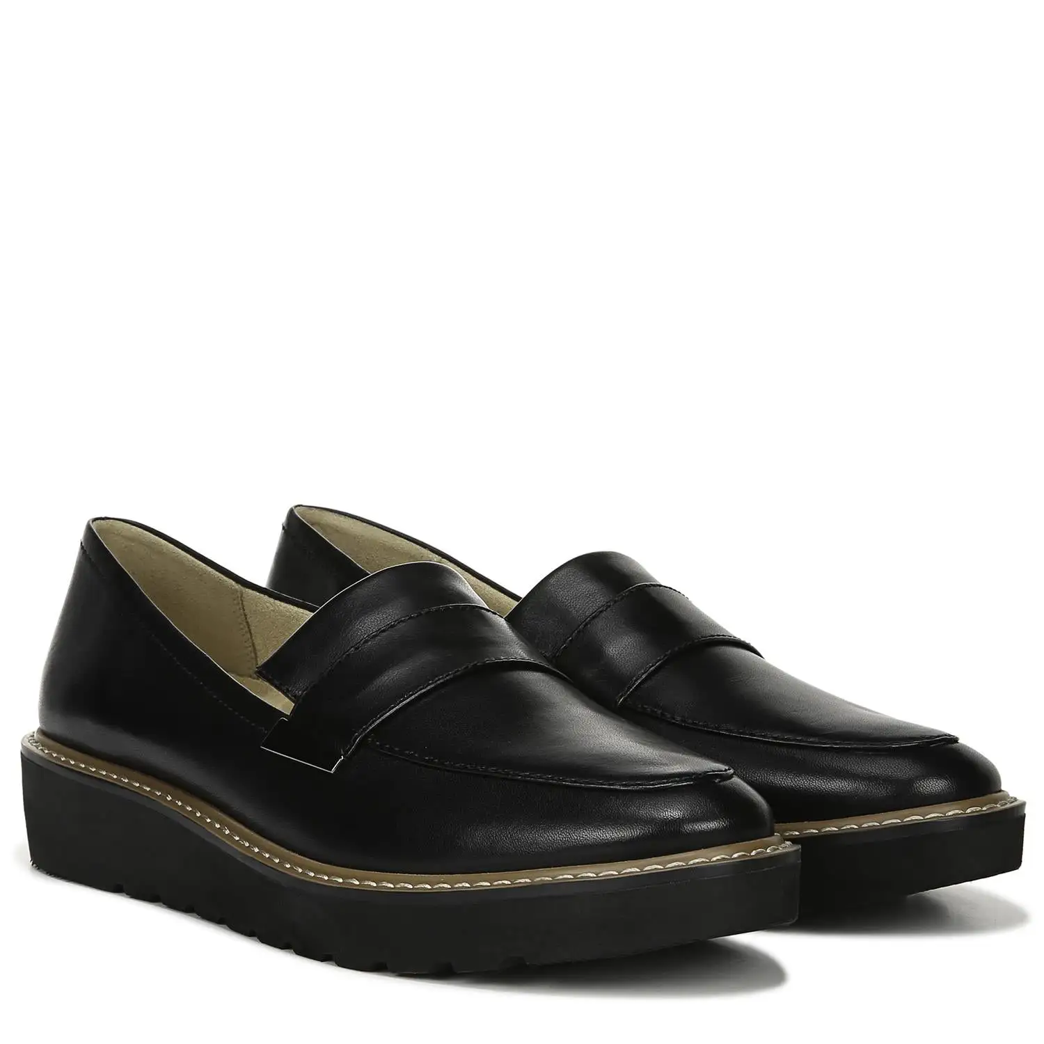 An instant classic: the Women’s Naturalizer Adiline Medium/Wide Loafer. Leather upper in a casual platform loafer style with a moc toe. Slip-on entry. Smooth lining with Contour+ fit system. Weightless construction. Durable traction outsole. 1.5″ platform height.