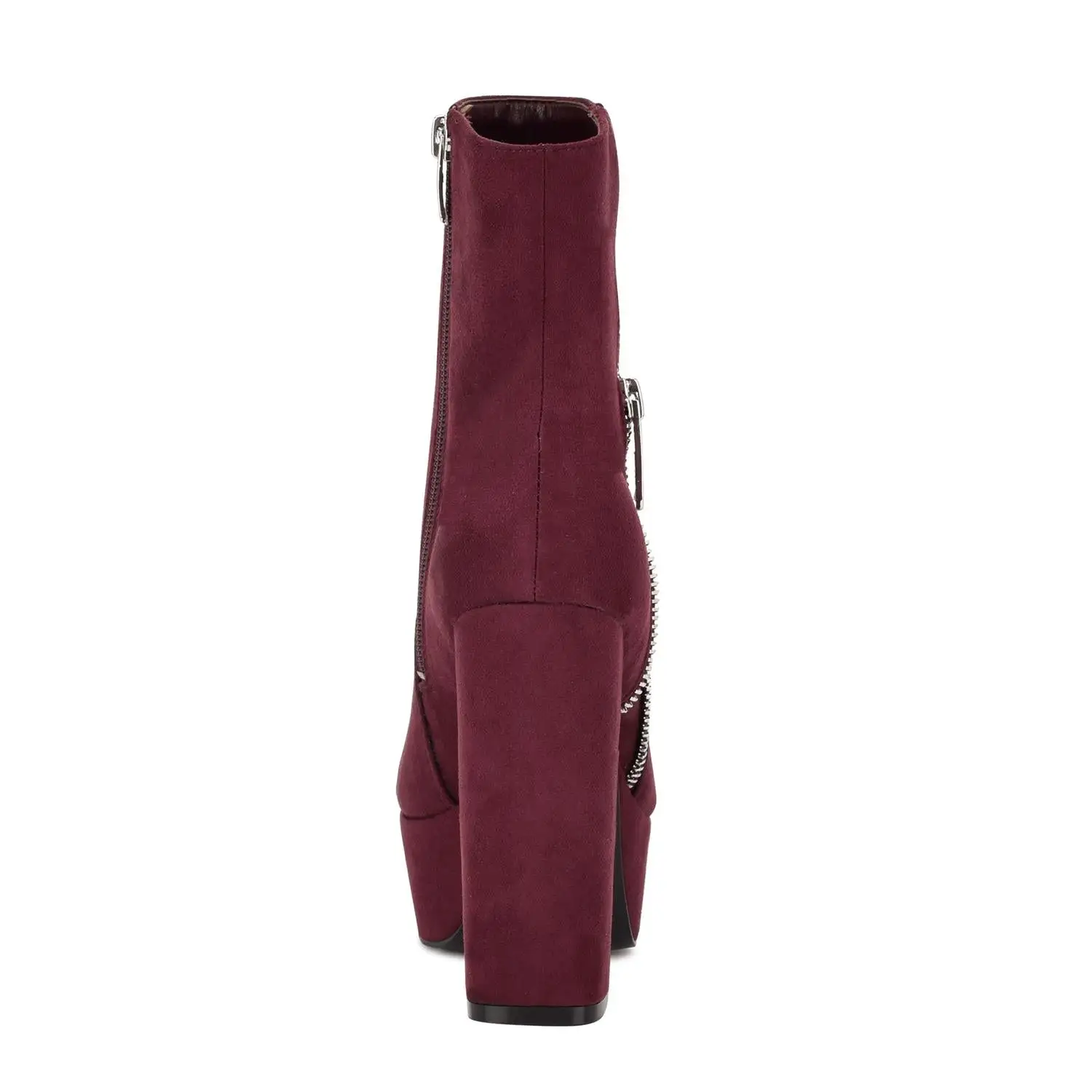 Fall boots take on new heights with the 90s inspired Kerri platform booties. These ultra-high ankle boots feature a decorative exposed zipper on the side and trendy snip toe.