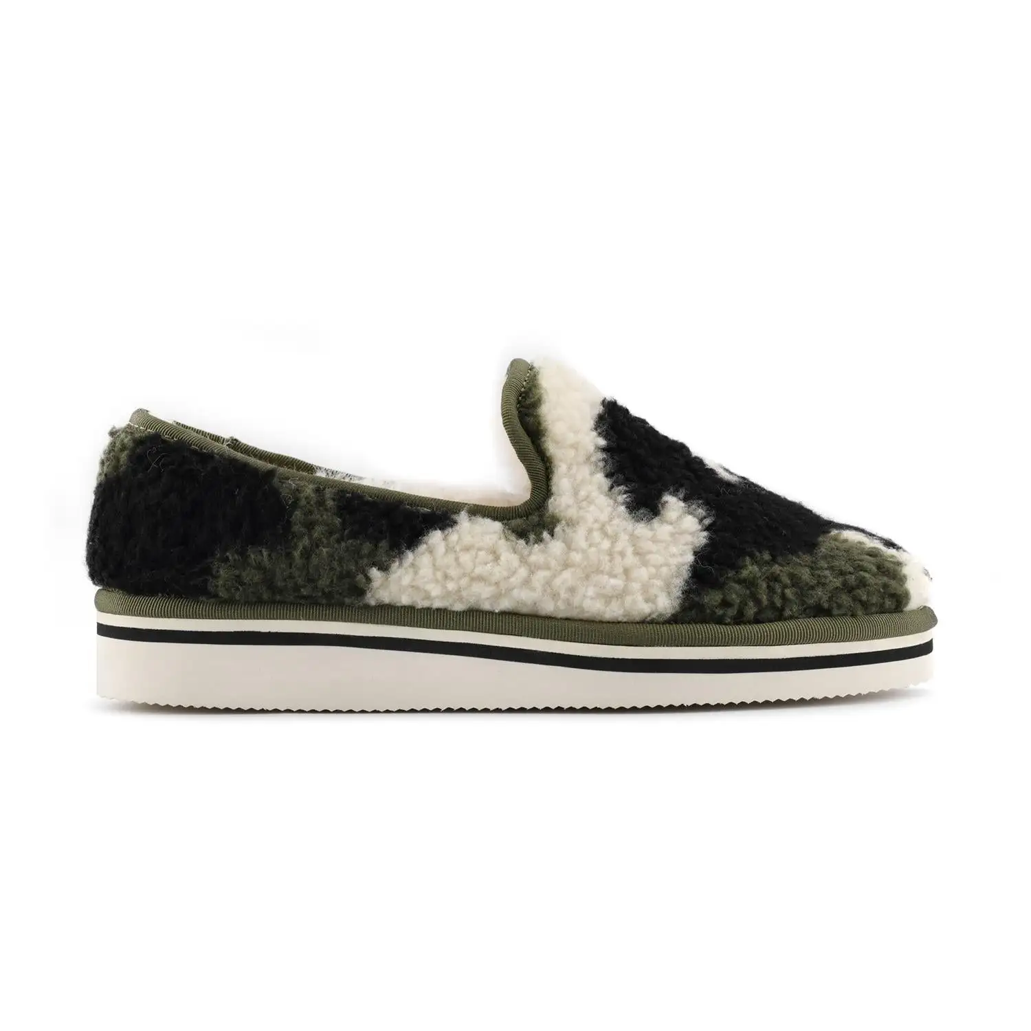 Get cozy with the Laze Slip On Flats. These indoor/outdoor loafers feature faux fur lining and a fuzzy felt upper. It comes in various colors and patterns, perfect for any style.
