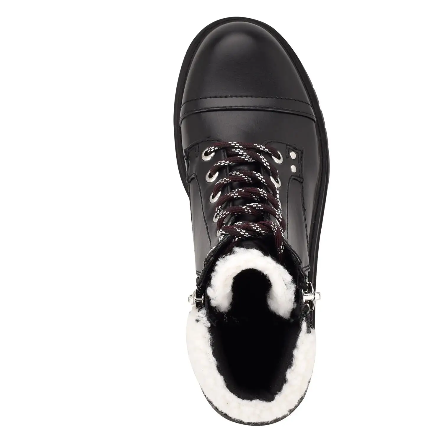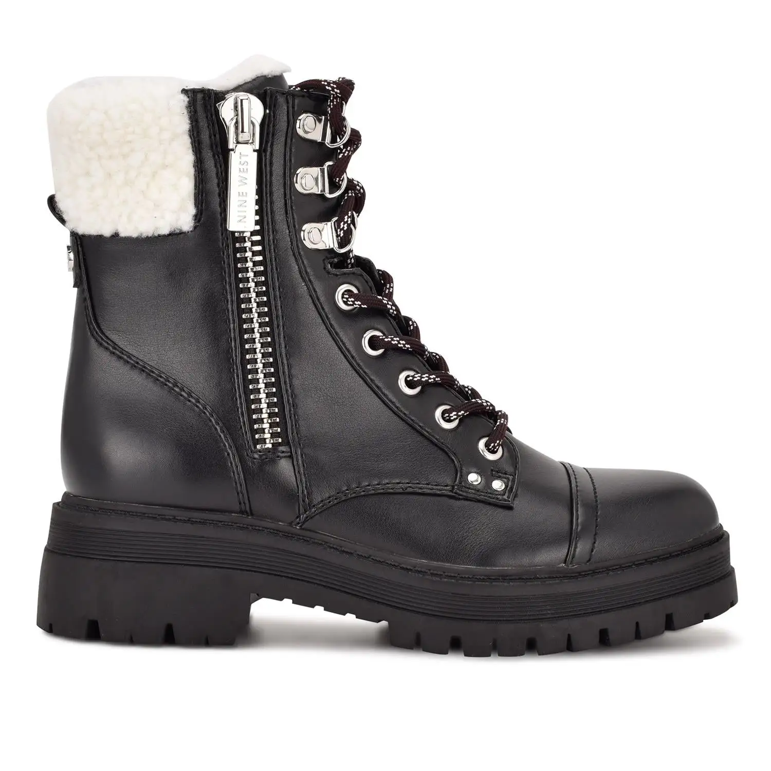 Tough out the cold weather with the Pike Combat boots. This work boot inspired style is elevated by its stylish faux fur trim and metallic exposed side zipper.