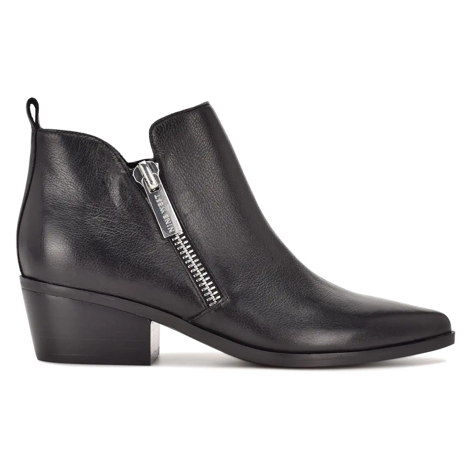 This low heeled, western inspired bootie is going to be a fall wardrobe staple. The Single Bootie features a pointed tow and low block heel that is perfect for walking around. The exposed asymmetrical side zipper makes these boots easy to slip on and off.