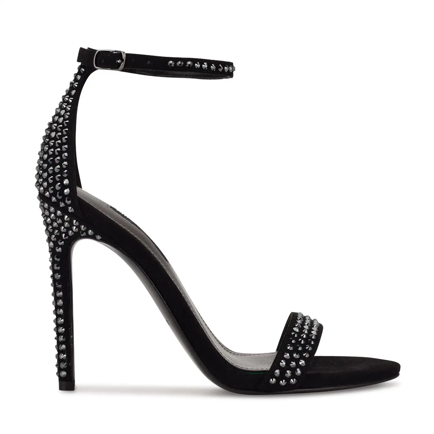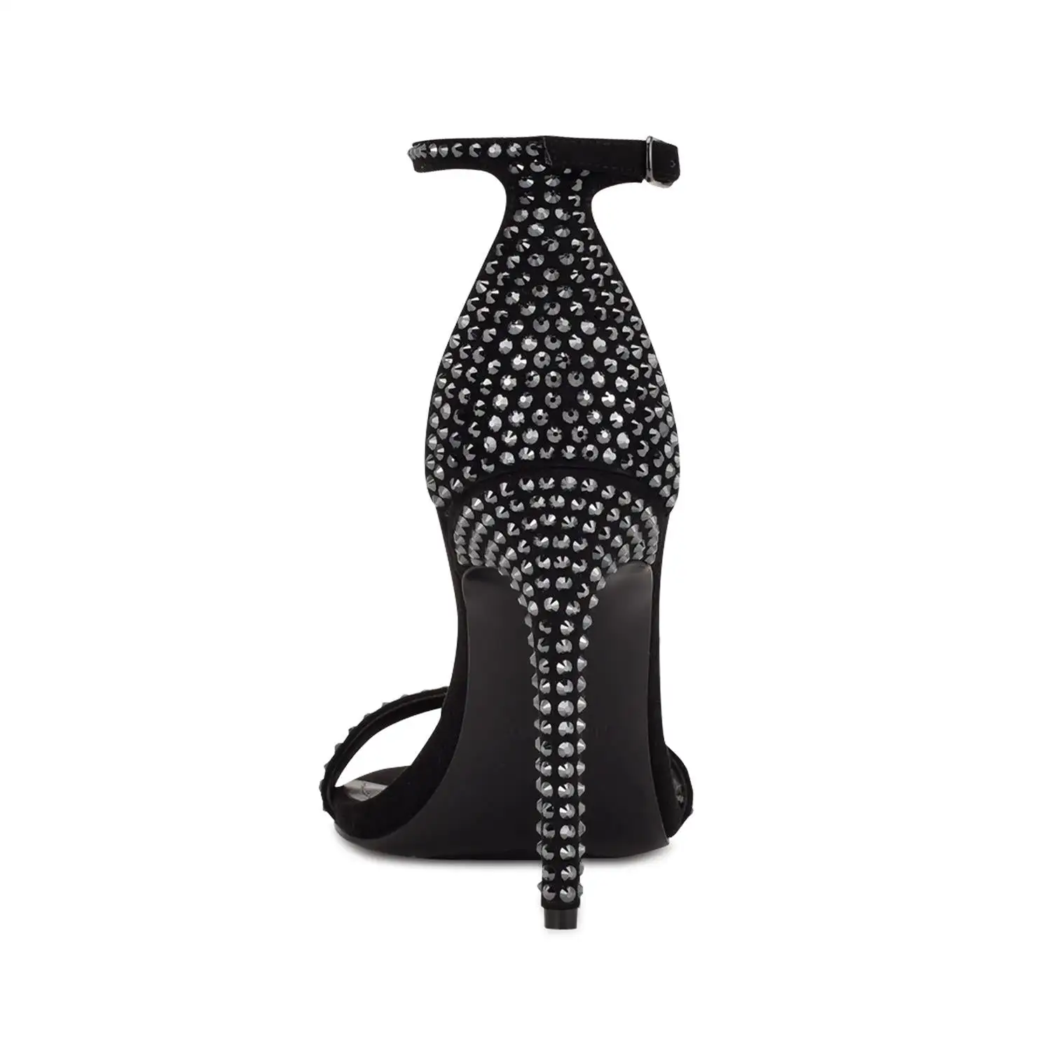 Dress to impress with the Toria high heeled dress sandals. These sexy sky high stiletto sandals are completely bejeweled on the heel and the skinny straps across the toe and ankle.