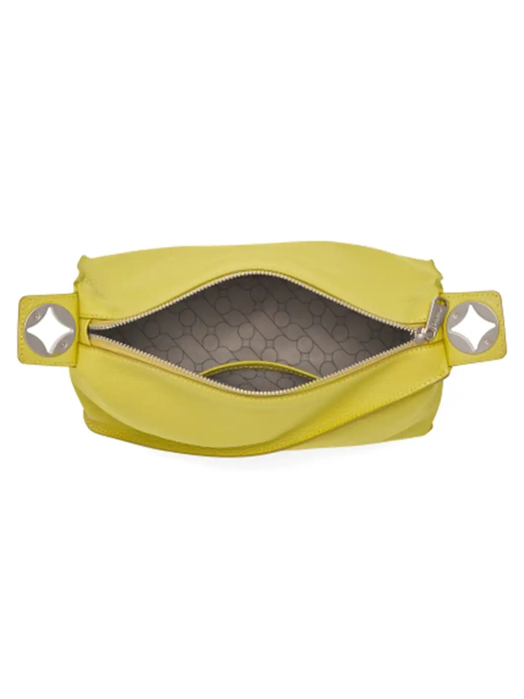 with shrunken leather, this classic slouch-shaped bag from Oryany evokes versatility at