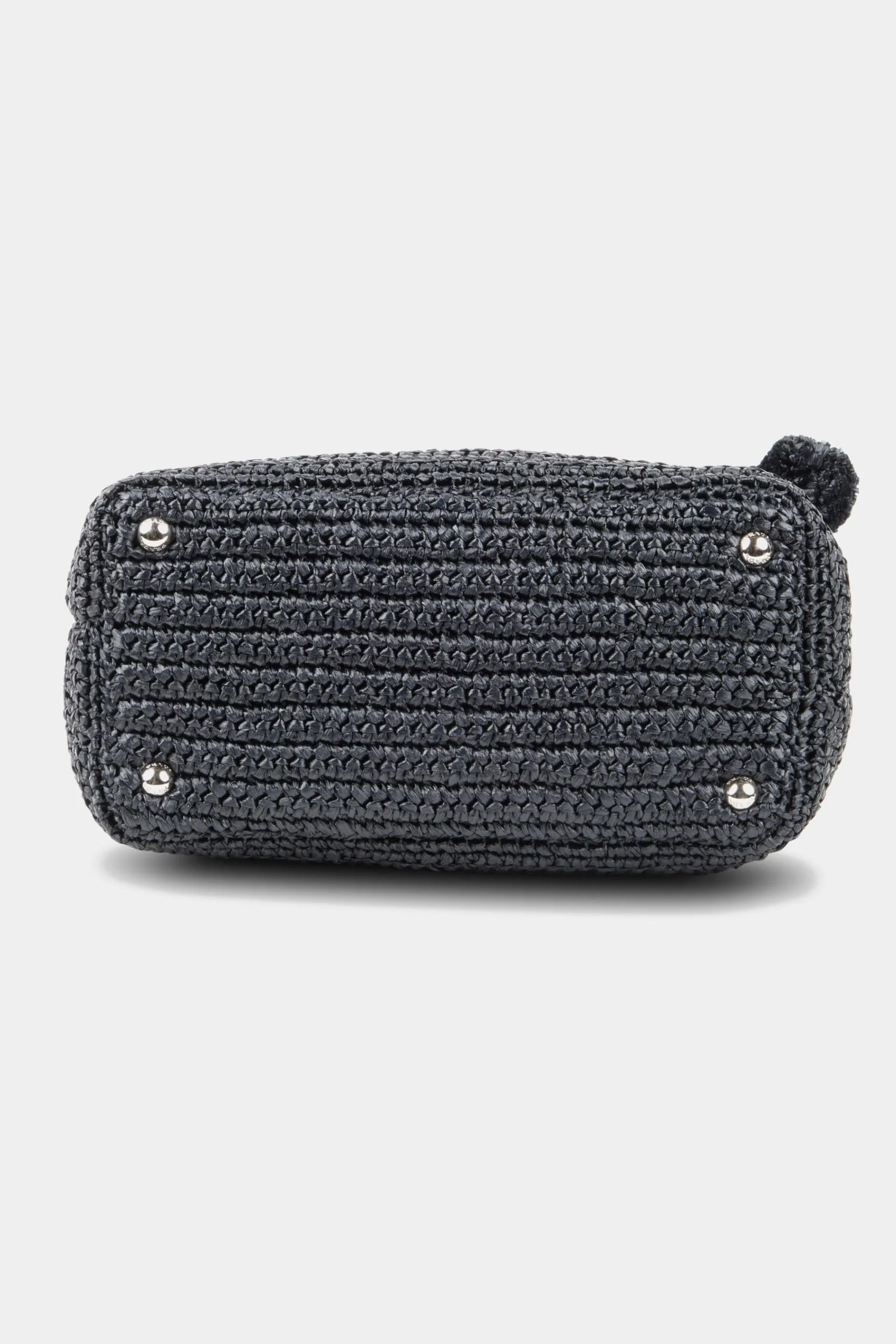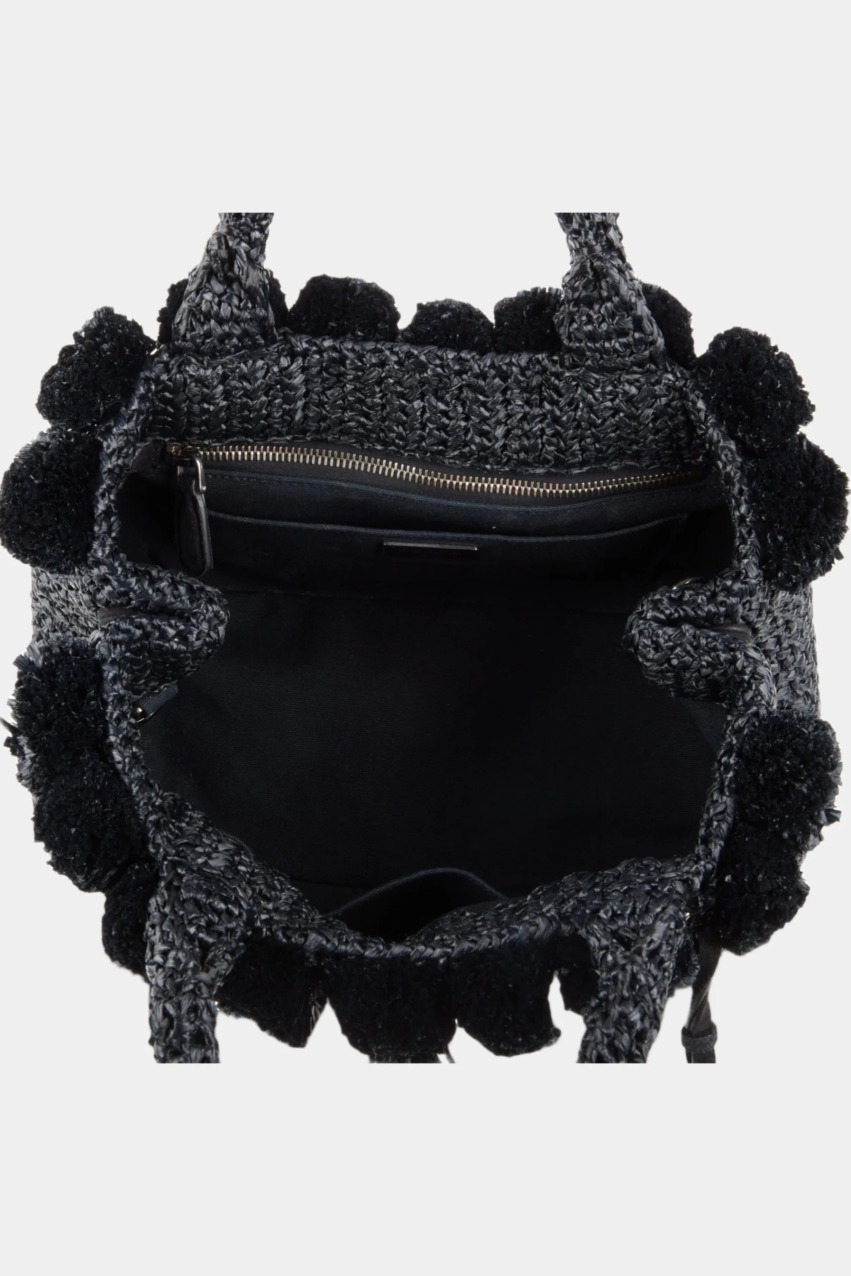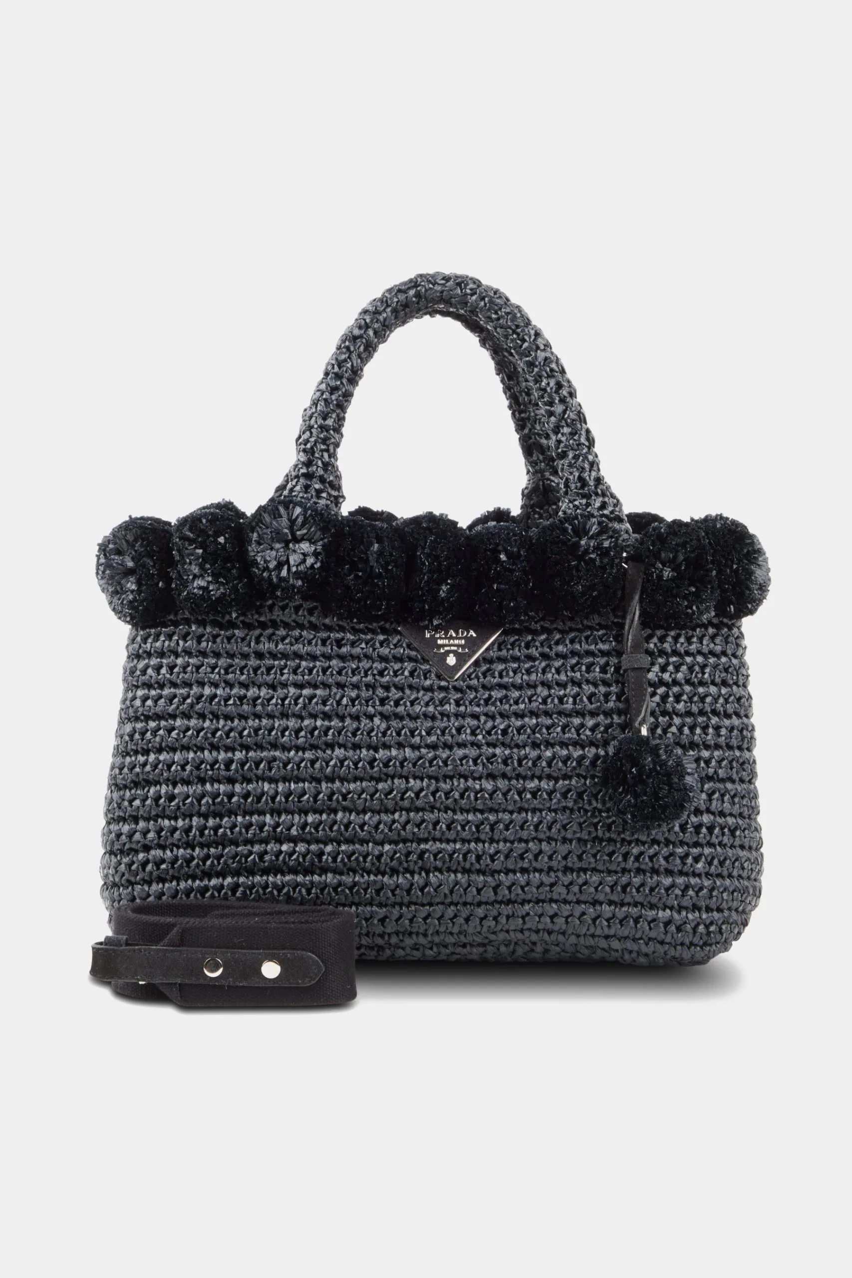 This Pom Pom Tote Bag is an eye-catching tote bag from Prada, crafted in durable raffia in black. It is a sophisticated statement bag with an open-top design and is adorned with pom pom embellishment and the signature enameled metal triangle Prada logo on the front makes it a charming bag that is sure to fetch you compliments. Unless otherwise stated, the item does not come with original brand accessories.