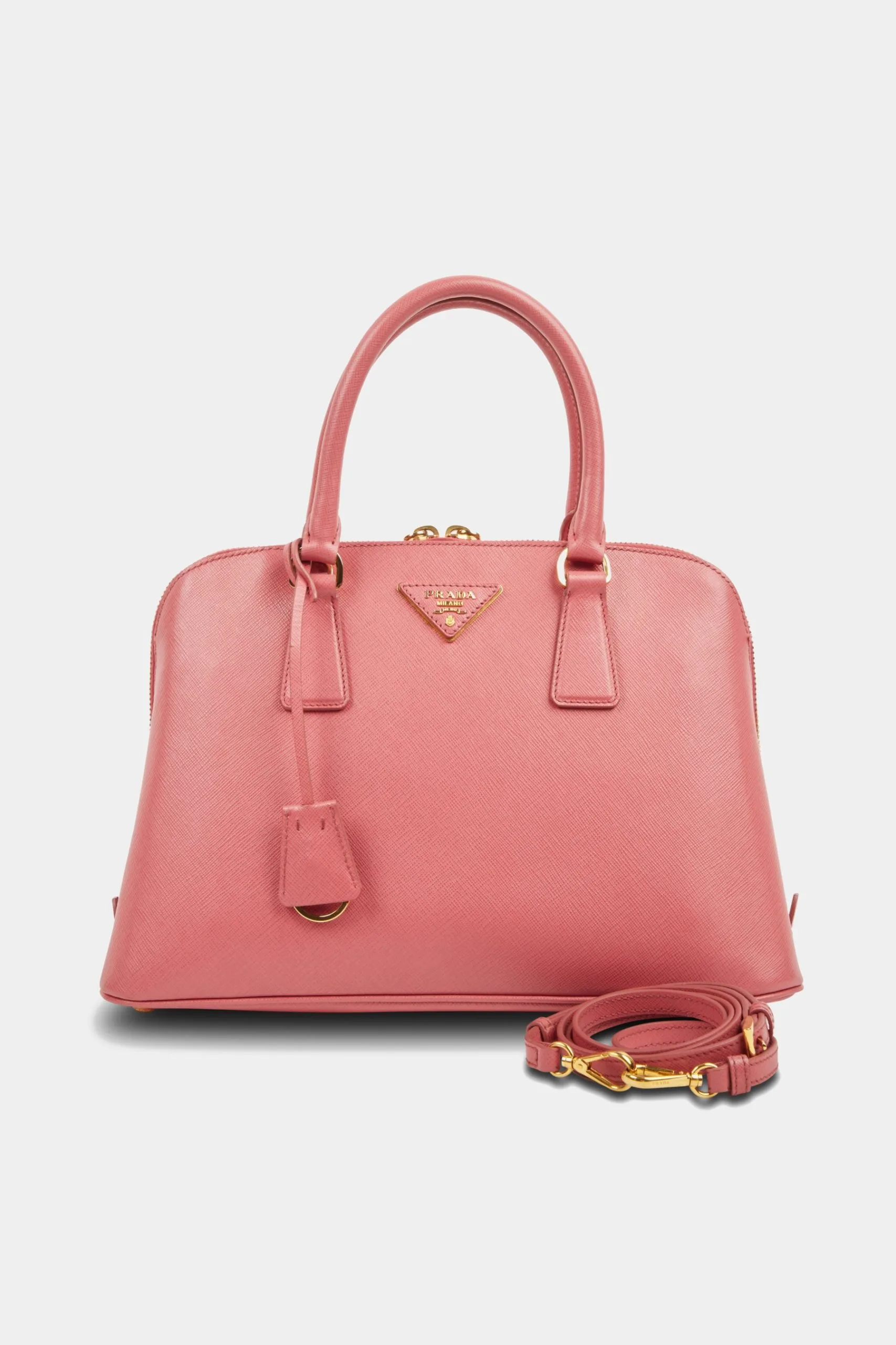 The Promenade is a timeless and elegant shoulder bag from Prada, crafted in ultra-durable calfskin Saffiano leather in pink. The Promenade is a classic-shaped bag that has a round top secured with a two-way zipper to reveal an interior with a zippered pocket separating two compartments in addition to a detachable shoulder strap and its iconic metal Prada logo on a leather triangle, making this bag truly sophisticated and eye-catching. Unless otherwise stated, the item does not come with original brand accessories.