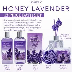 Lovery Honey Lavender Home Spa Basket 13-Piece Set