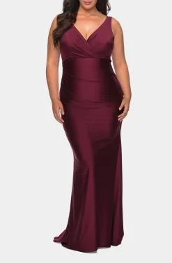 La Femme Faux Wrap Bodice Simple Jersey Gown