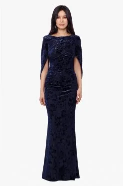 La Femme Long Lace Dress Sequins And Sheer 3/4 Sleeves