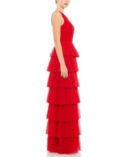 Ieena For Mac Duggal Asymmetrical Chiffon Tiered Gown
